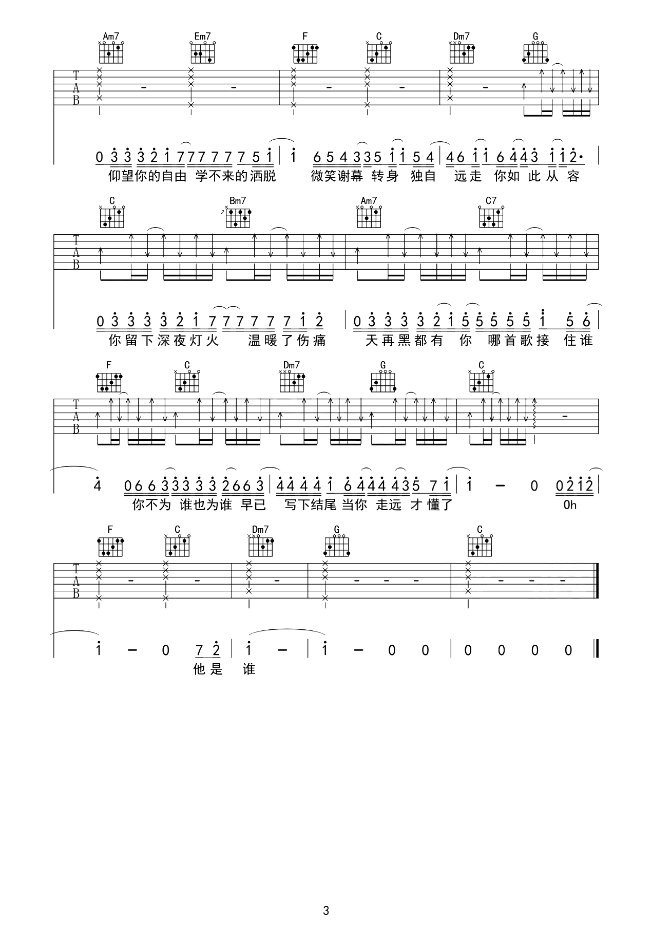 唐汉霄《再见深海》吉他谱_C调_吉他图片谱,弹唱吉他谱