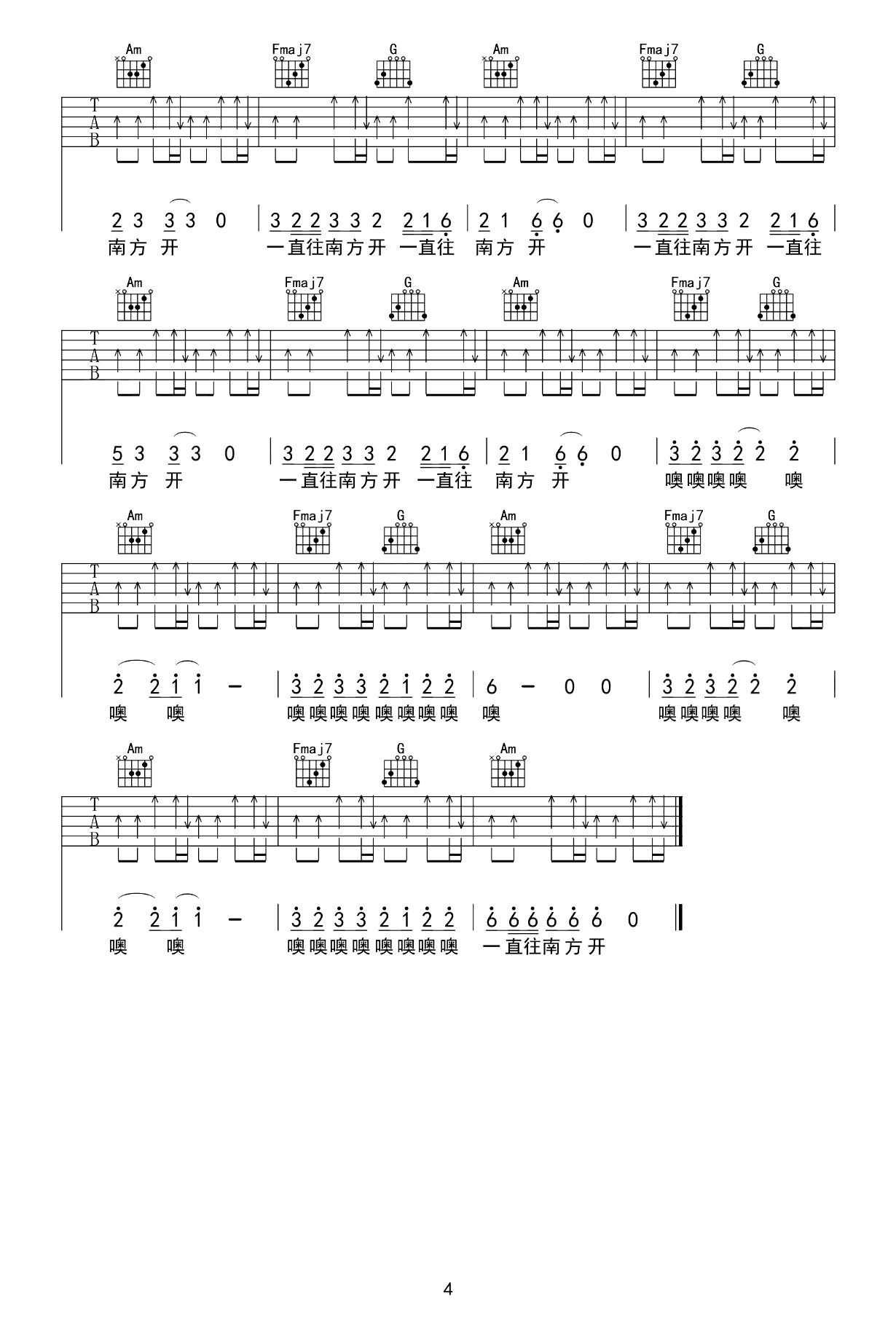 胡艾彤《喂猪》吉他谱_C调指法拍弦版