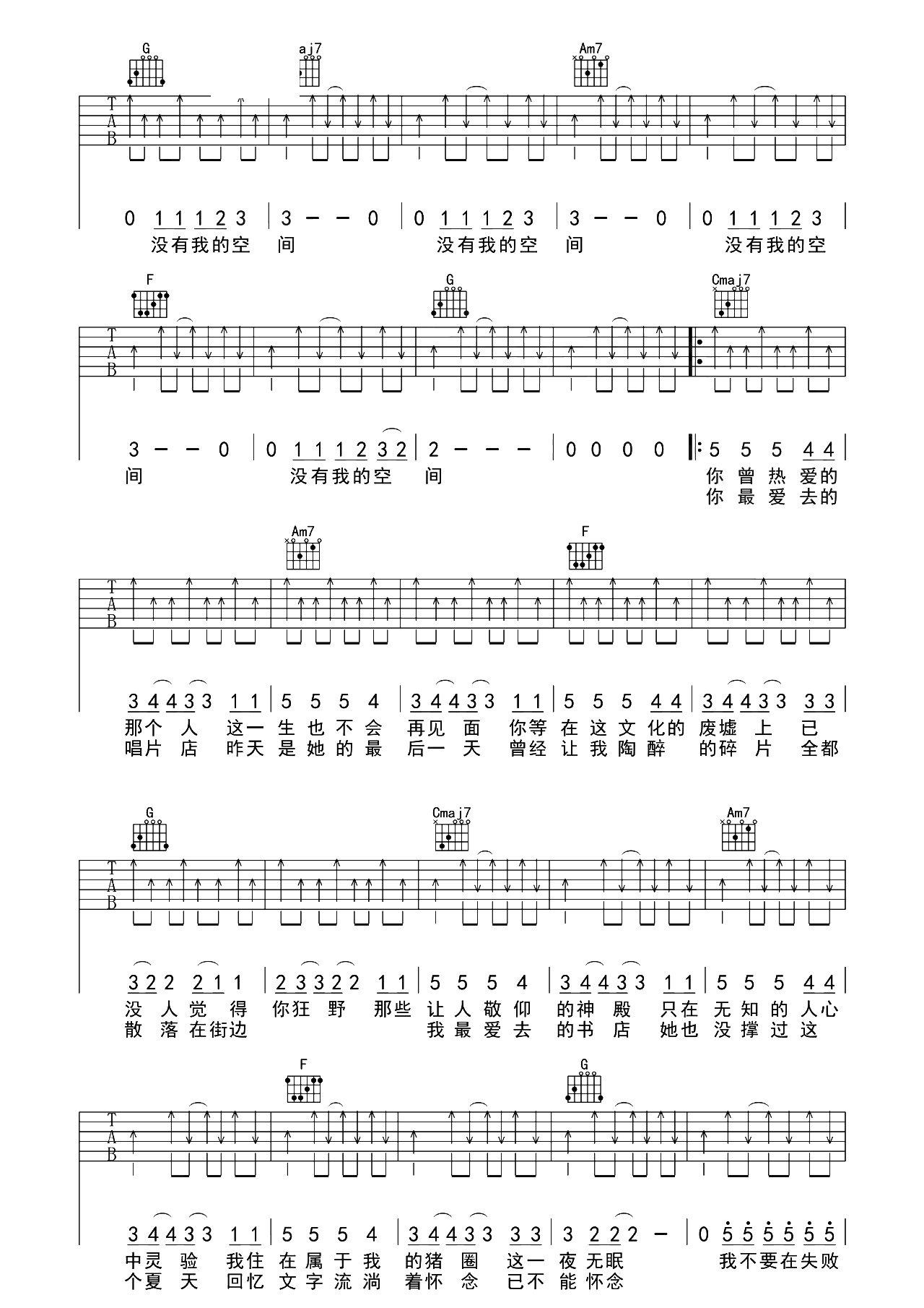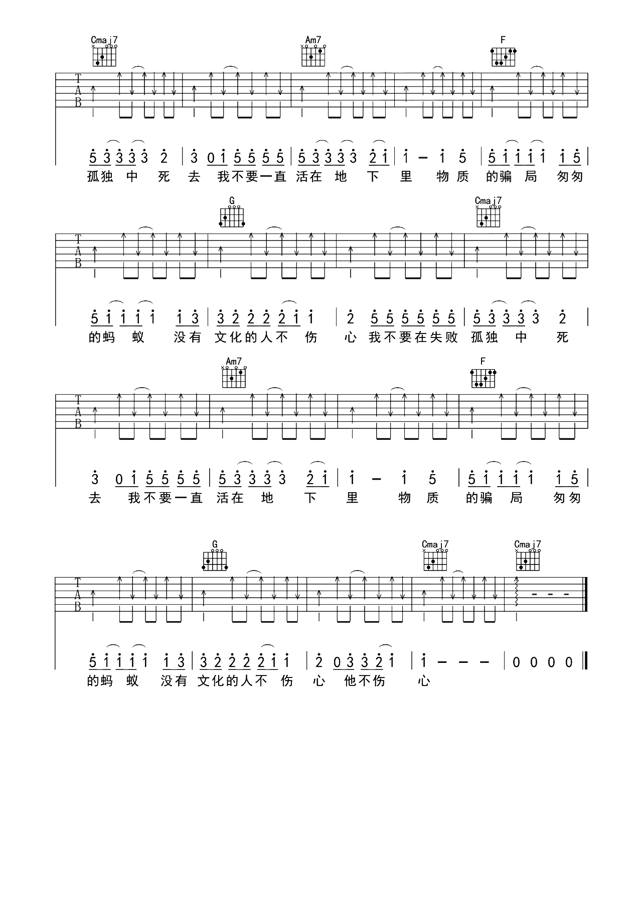 新裤子乐队《没有理想的人不伤心》吉他谱_C调_吉他图片谱,弹唱吉他谱