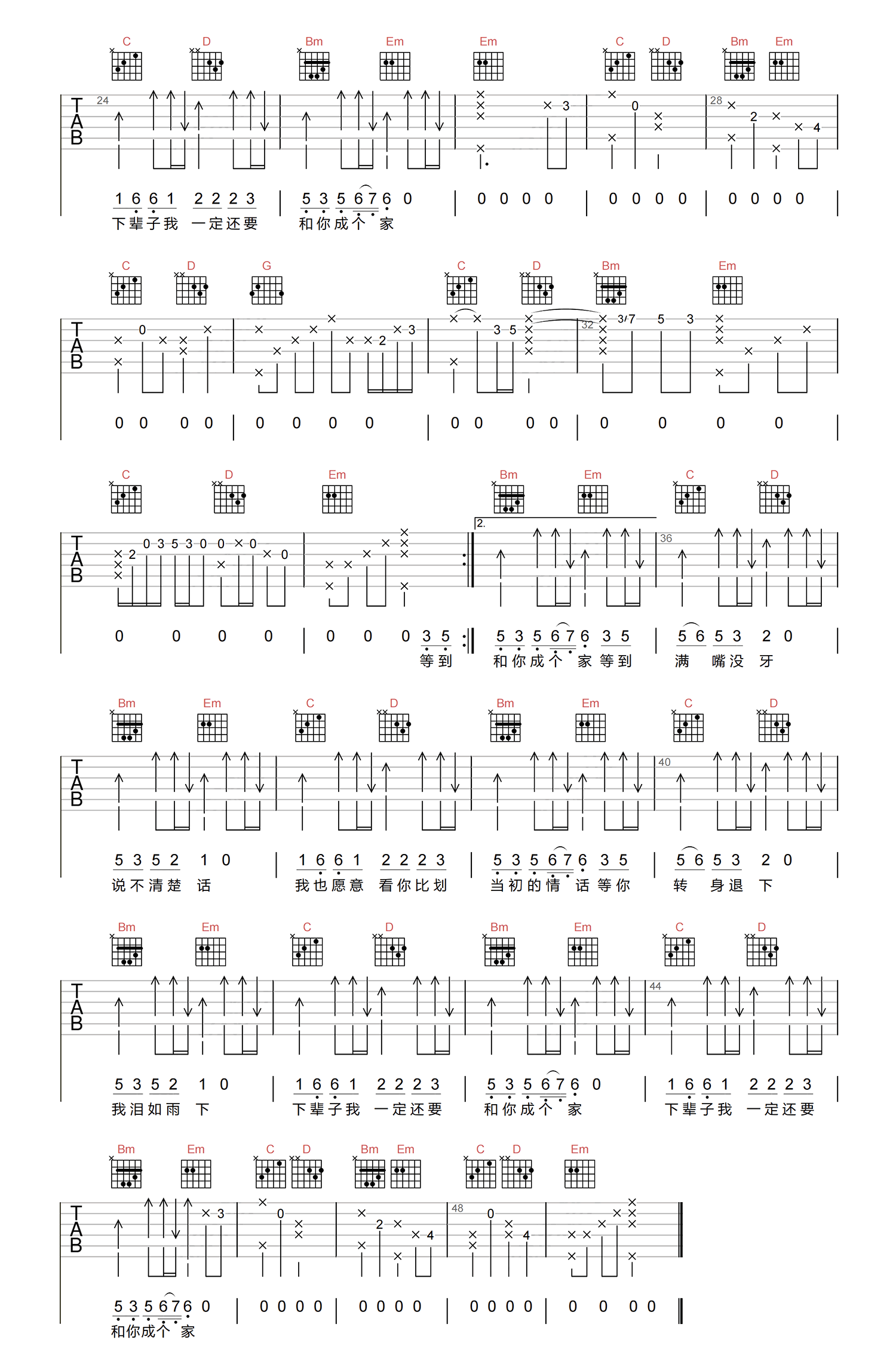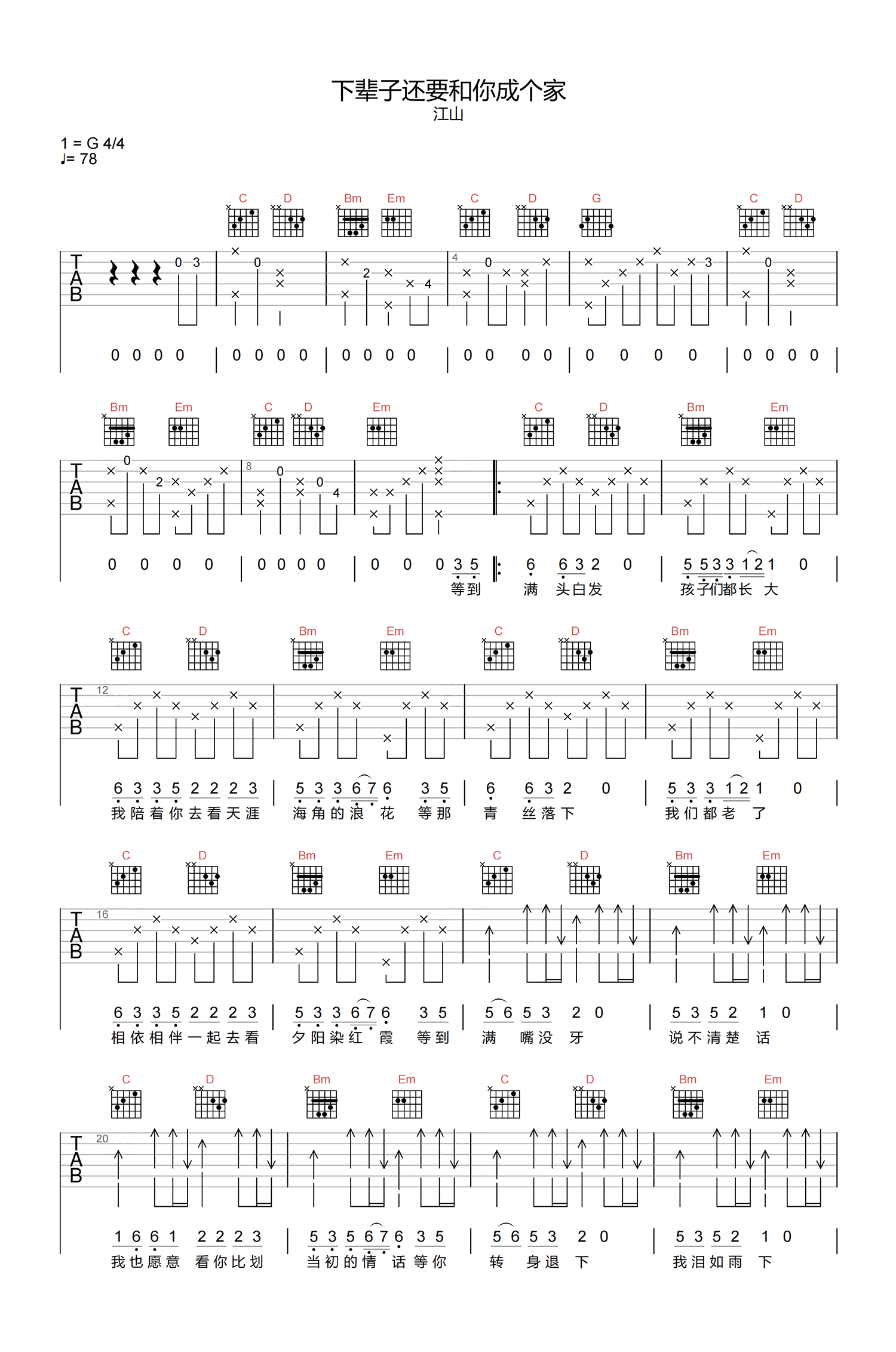 江山《下辈子还要和你成个家》吉他谱_G调_吉他图片谱,原版_高清弹唱谱