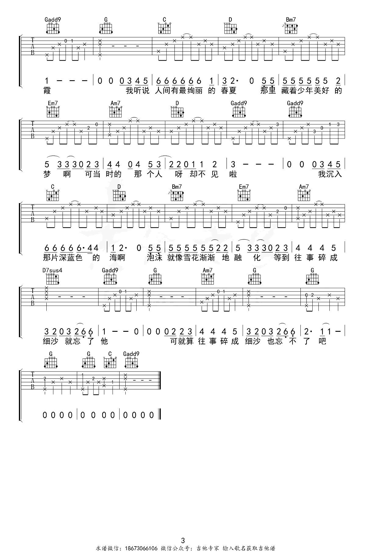 吉他谱大全 (微信公众号:qupu100com)