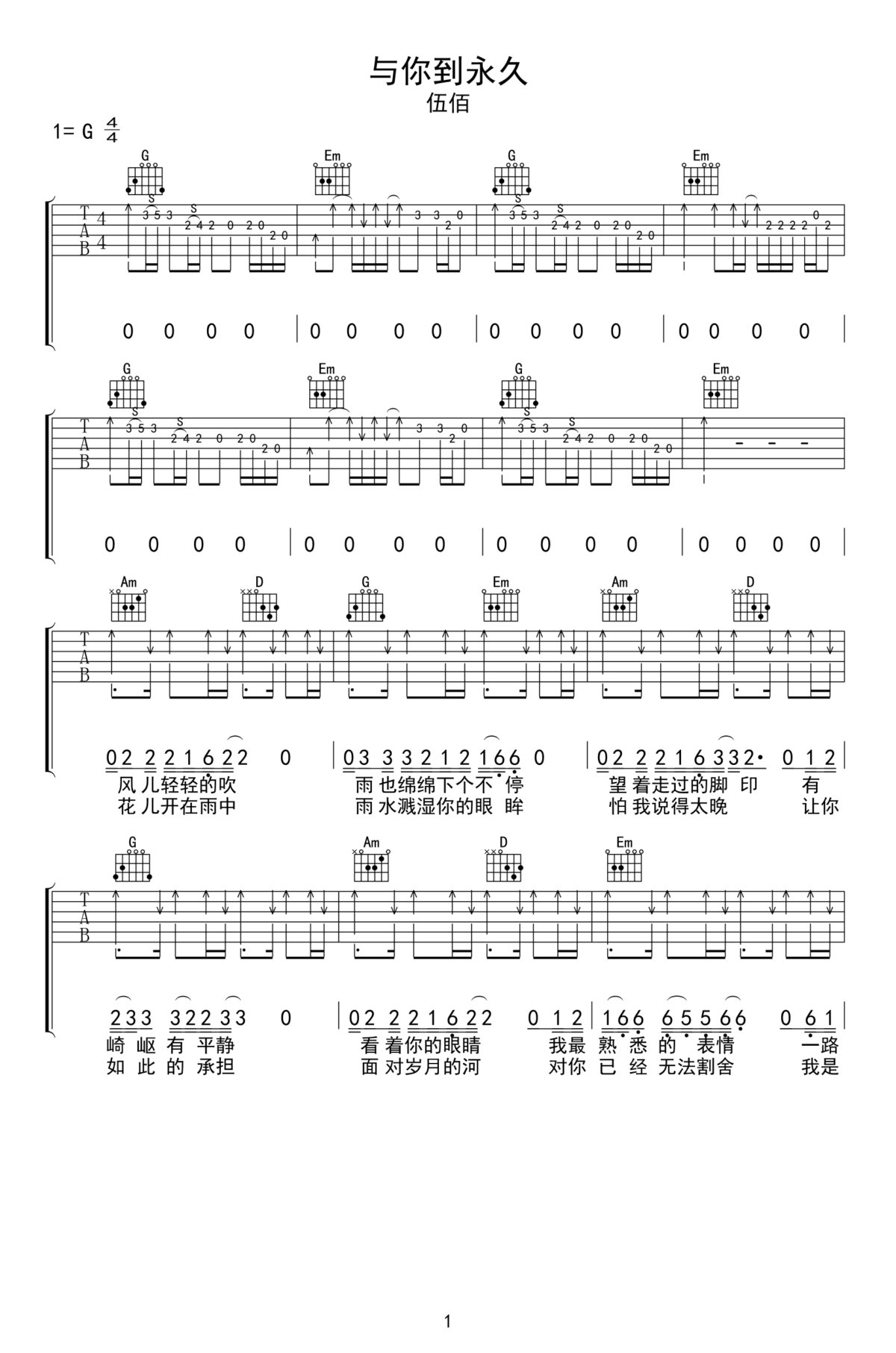 伍佰《与你到永久》吉他谱_G调_吉他图片谱,_高清弹唱谱