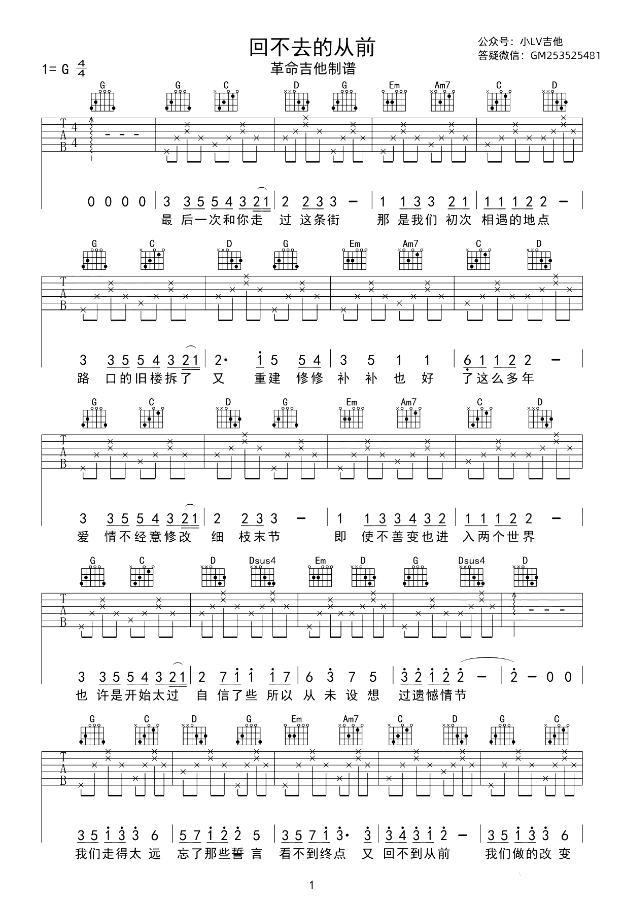 周延英《回不去的从前》吉他谱_G调_吉他图片谱,简单版_弹唱教学视频