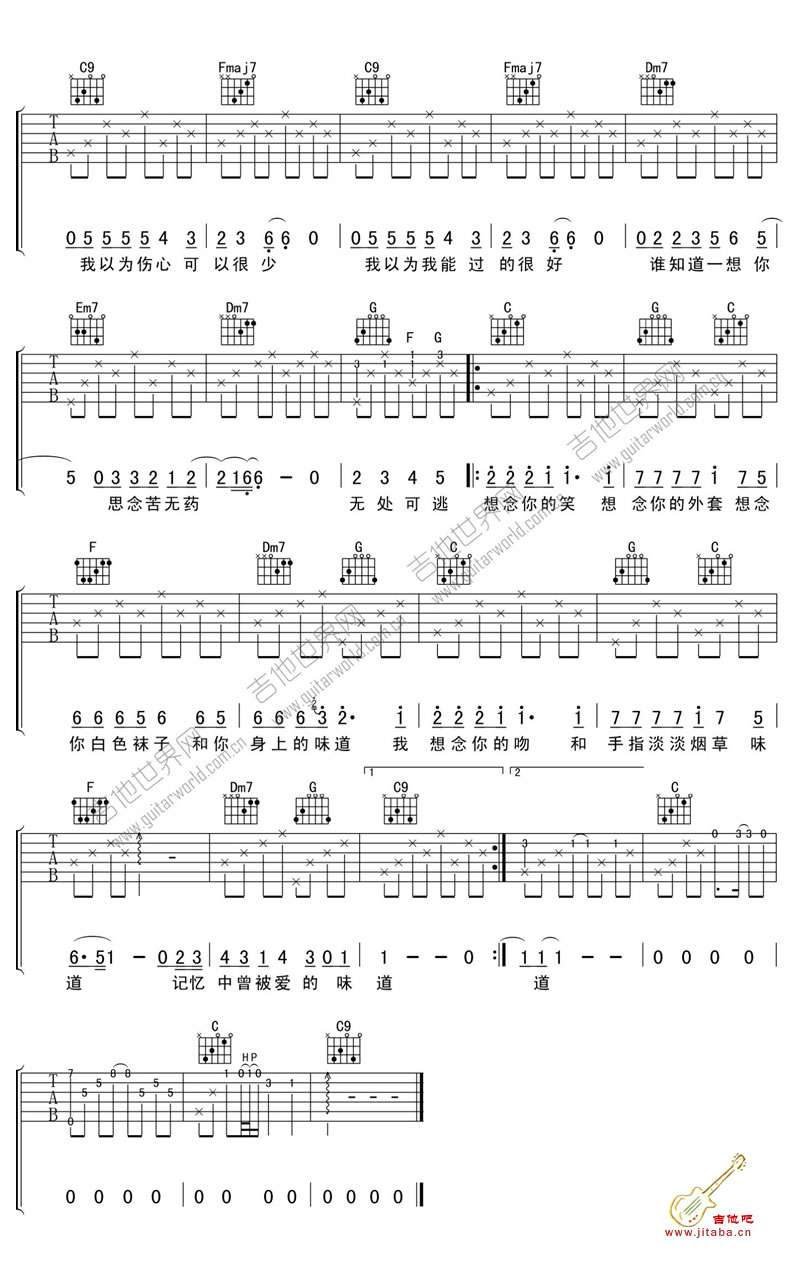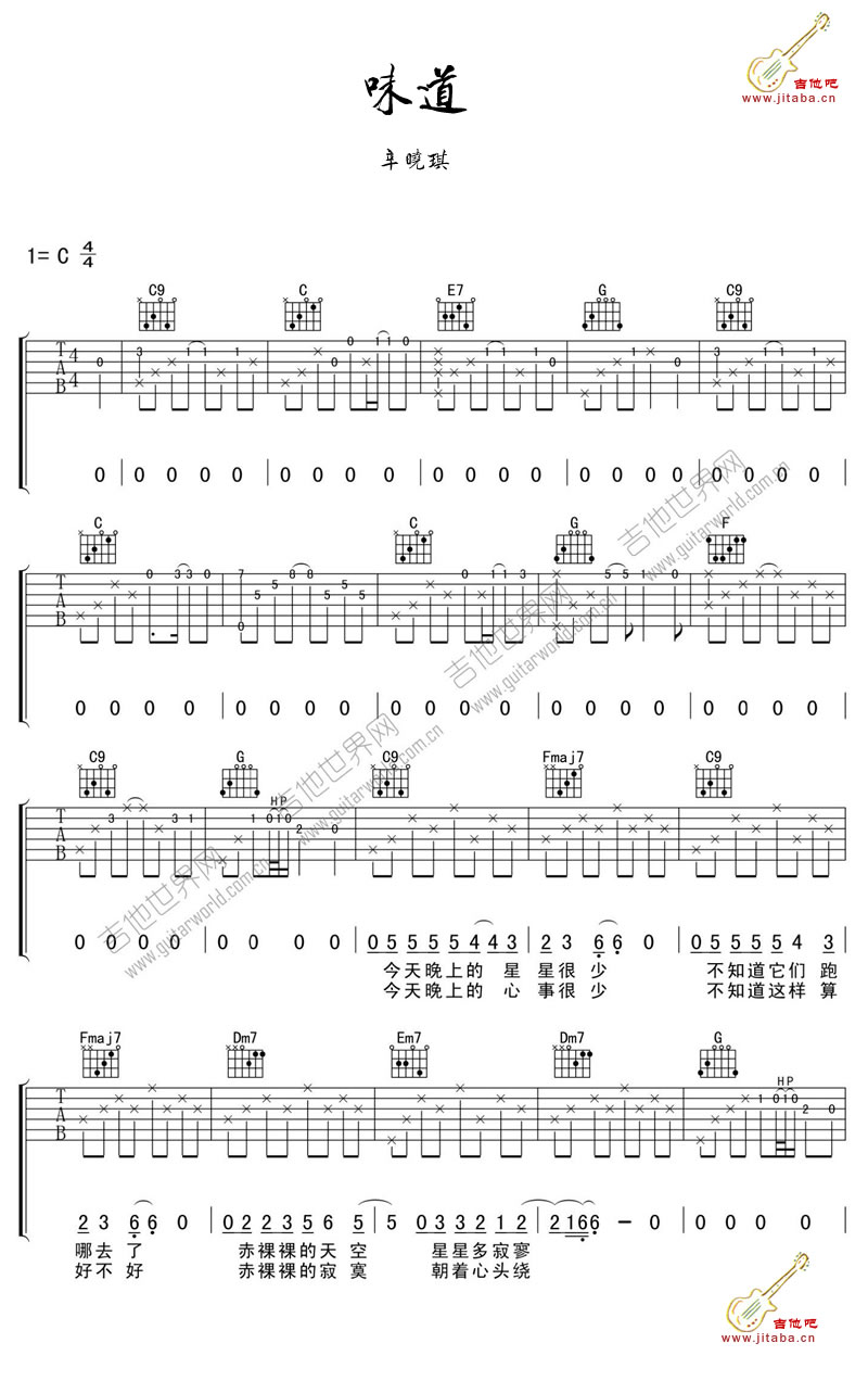 辛晓琪《味道》吉他谱 C调