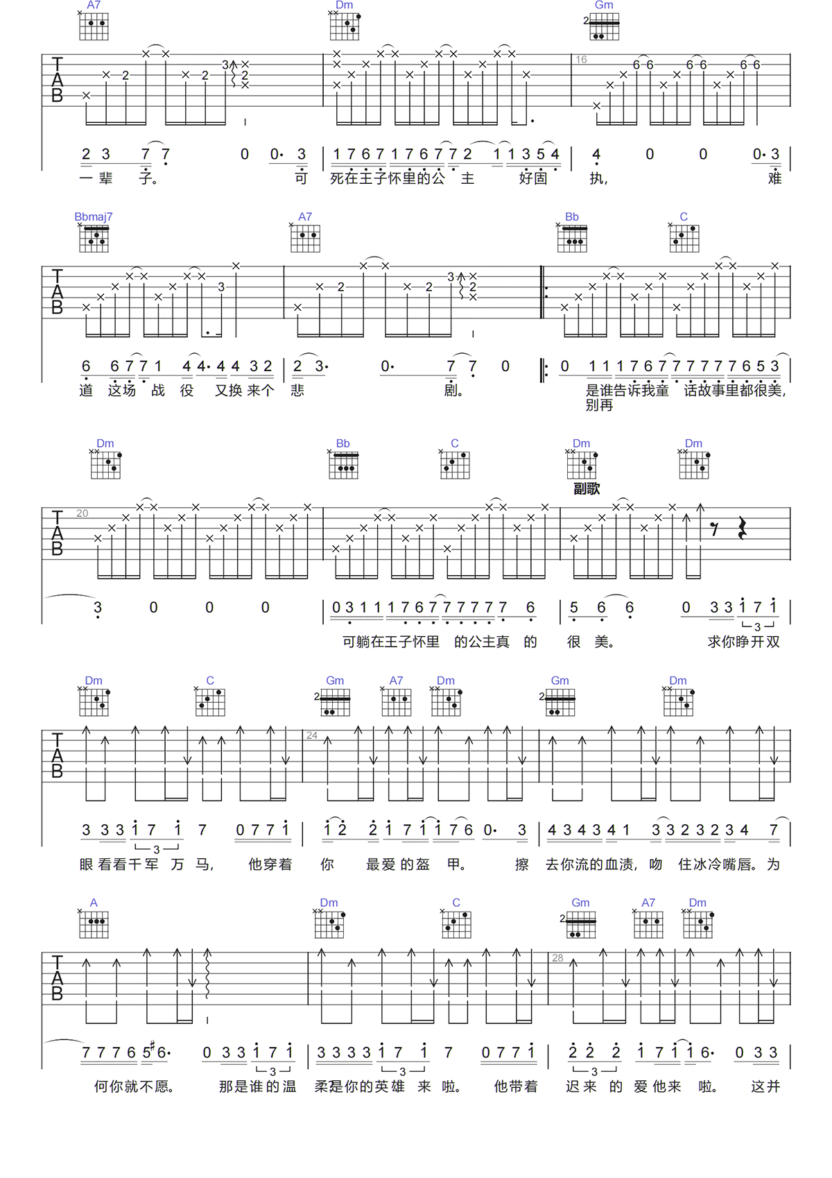 该首曲子拥有史诗般磅礴气势的前奏、极富画面感和故事情节的词曲,讲述了一段战争之中属于王子与公主之间“迟来的爱”的凄美爱情。历经千辛万苦来到公主面前的王子,却来不及拯救等待他的公主和他们的爱情。