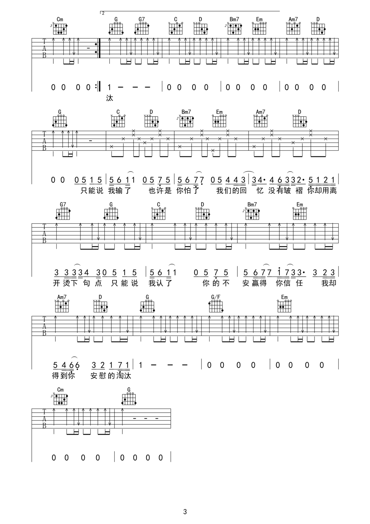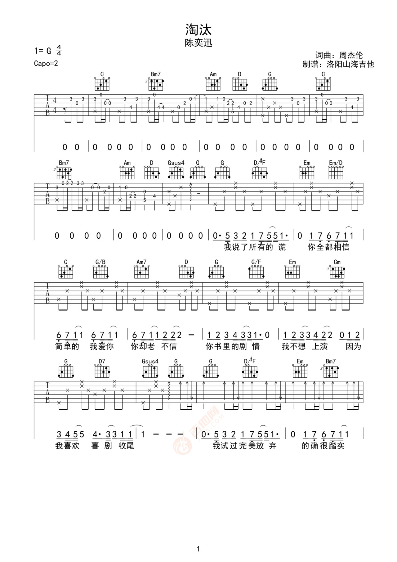 陈奕迅《淘汰》 G调 吉他谱