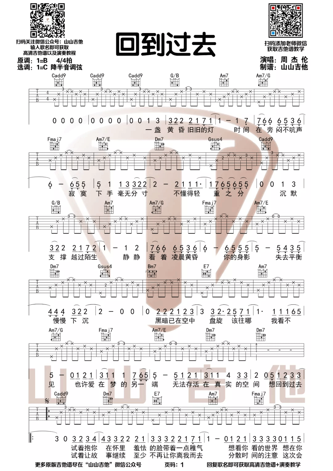 周杰伦《回到过去》C调 吉他谱