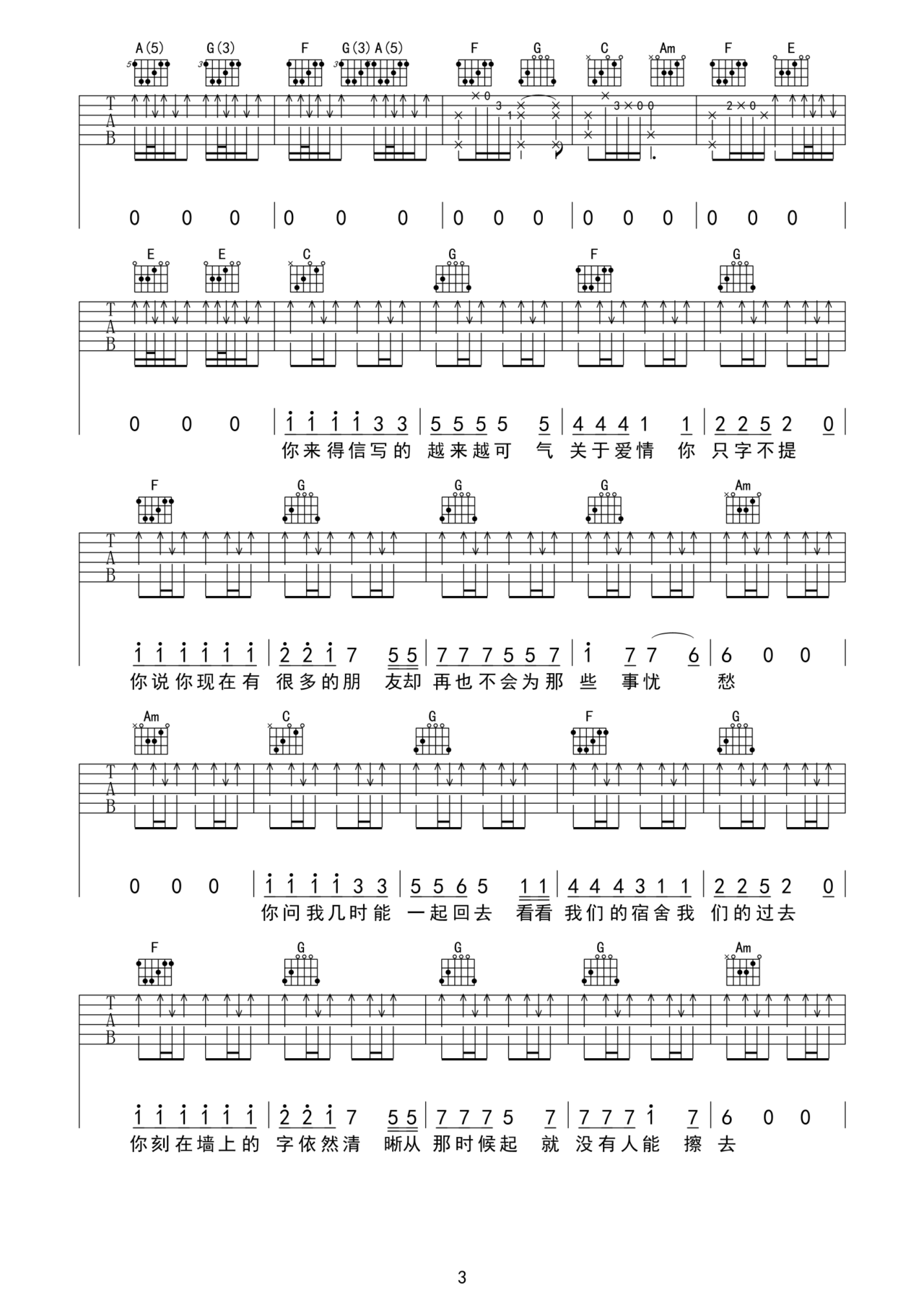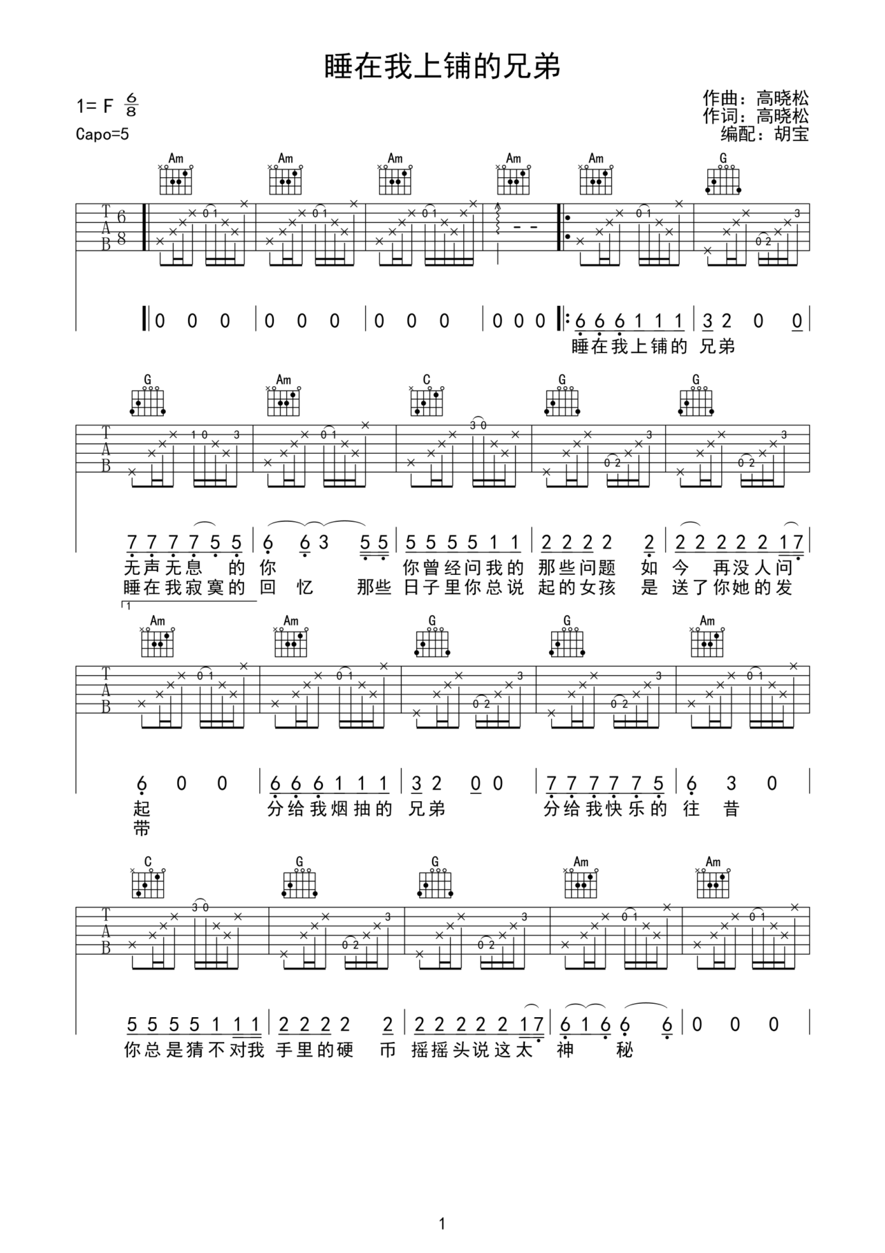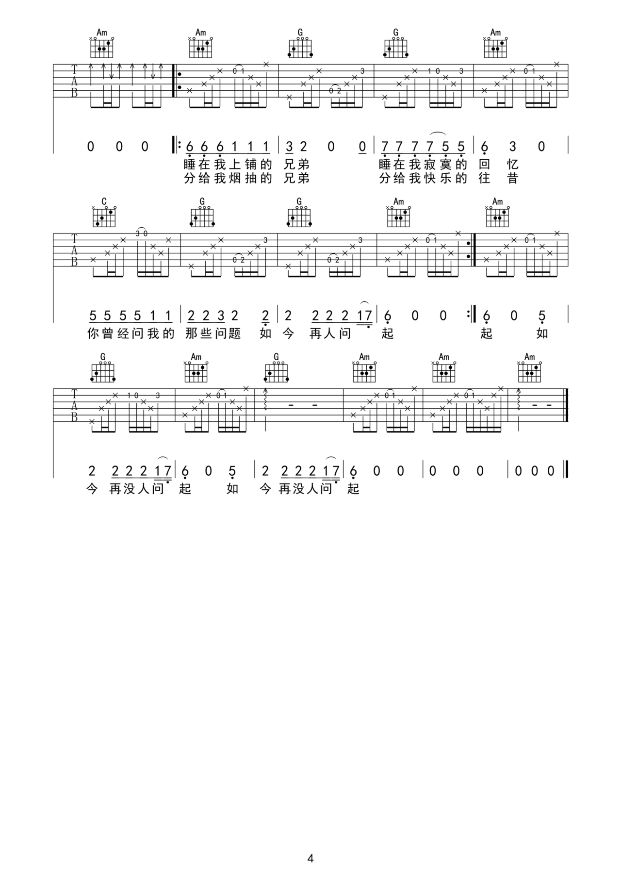 老狼《睡在我上铺的兄弟》吉他谱 F调