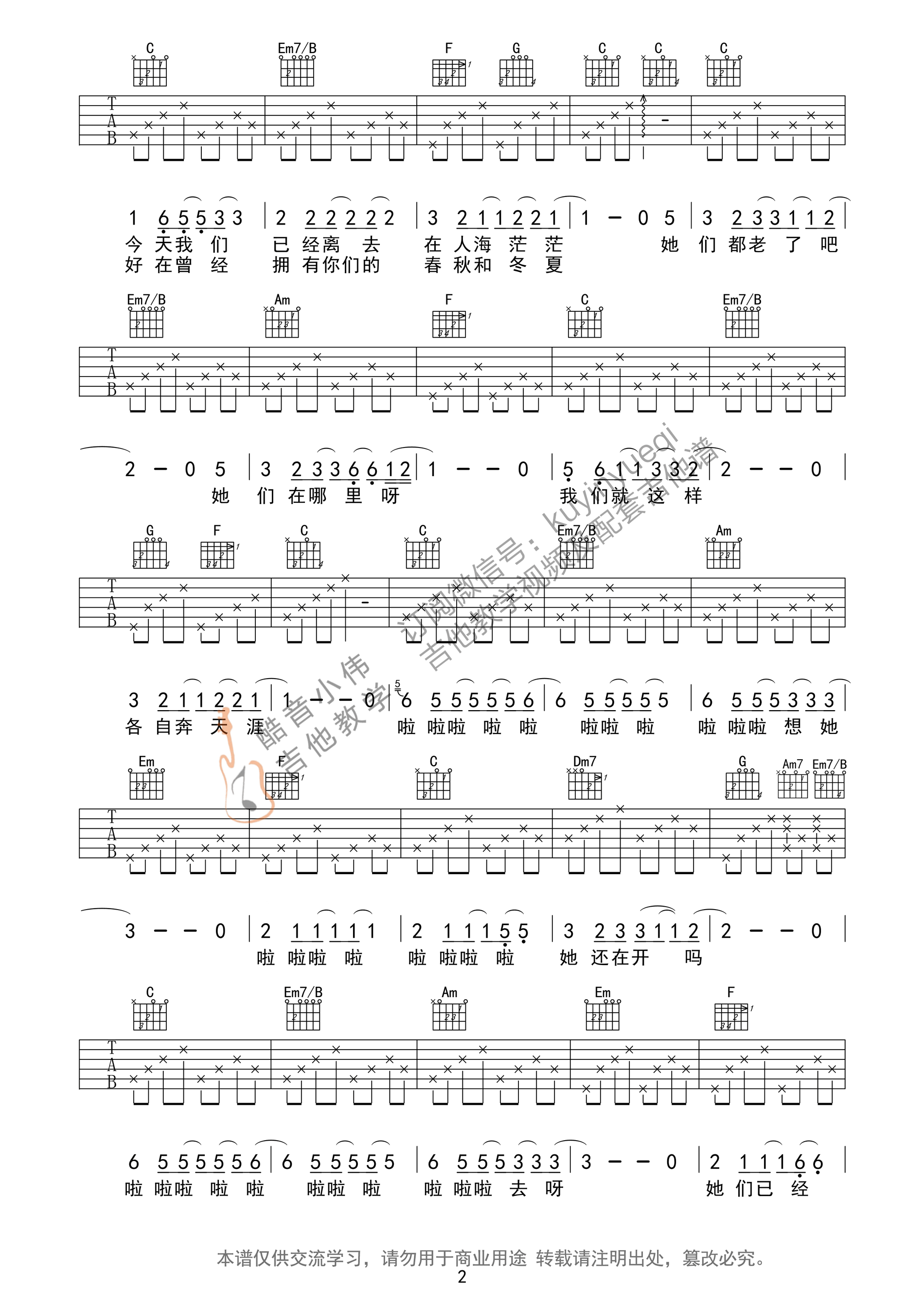 范玮琪演唱的一首歌曲,4/4拍的节奏,这首歌曲的原调为#C调,这里曲谱采用了C调指法进行编配,演唱时夹变调夹1品可回到原调,也可根据个人实际嗓音情况选择。曲谱由酷琴谱更新上传,共3张高清图片弹唱吉他谱例