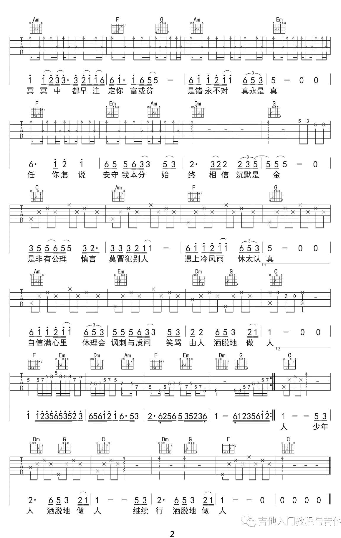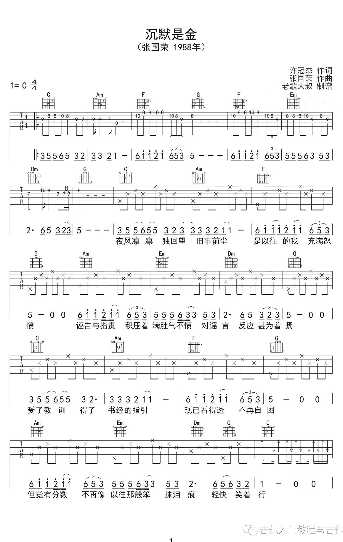 《沉默是金》张国荣 C调 吉他弹唱谱