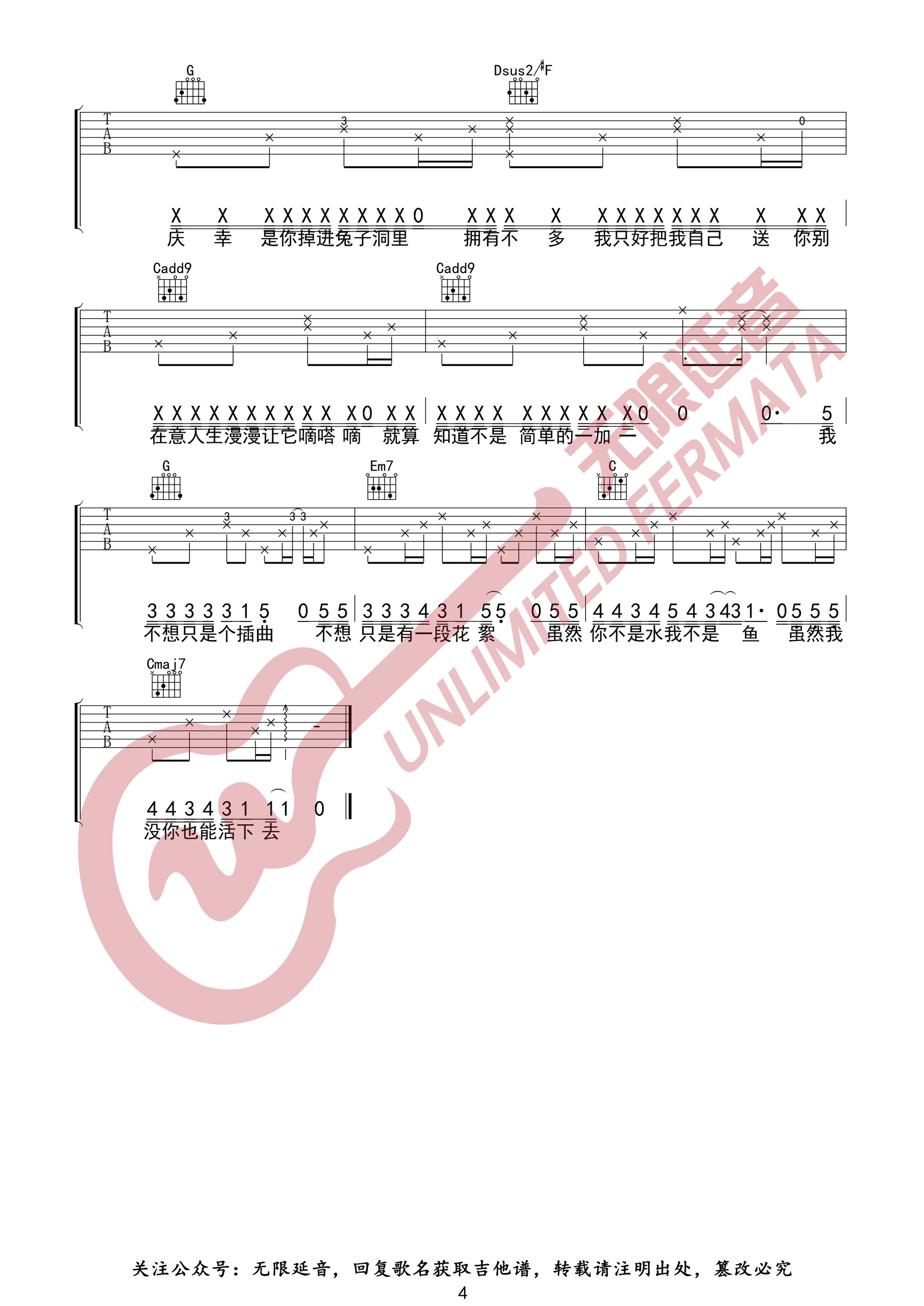 《没你也能活下去》姜铭杨 G调原版 吉他弹唱谱