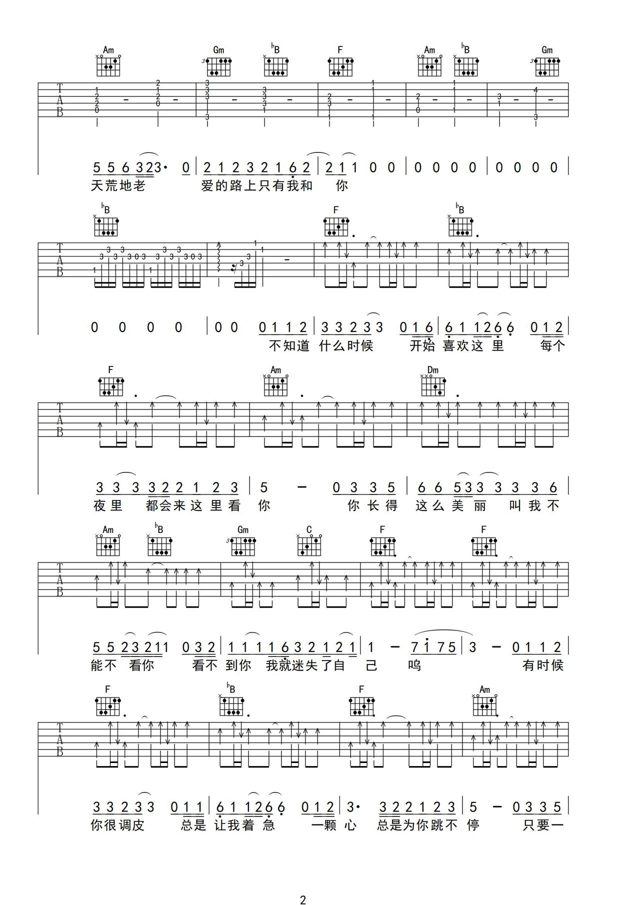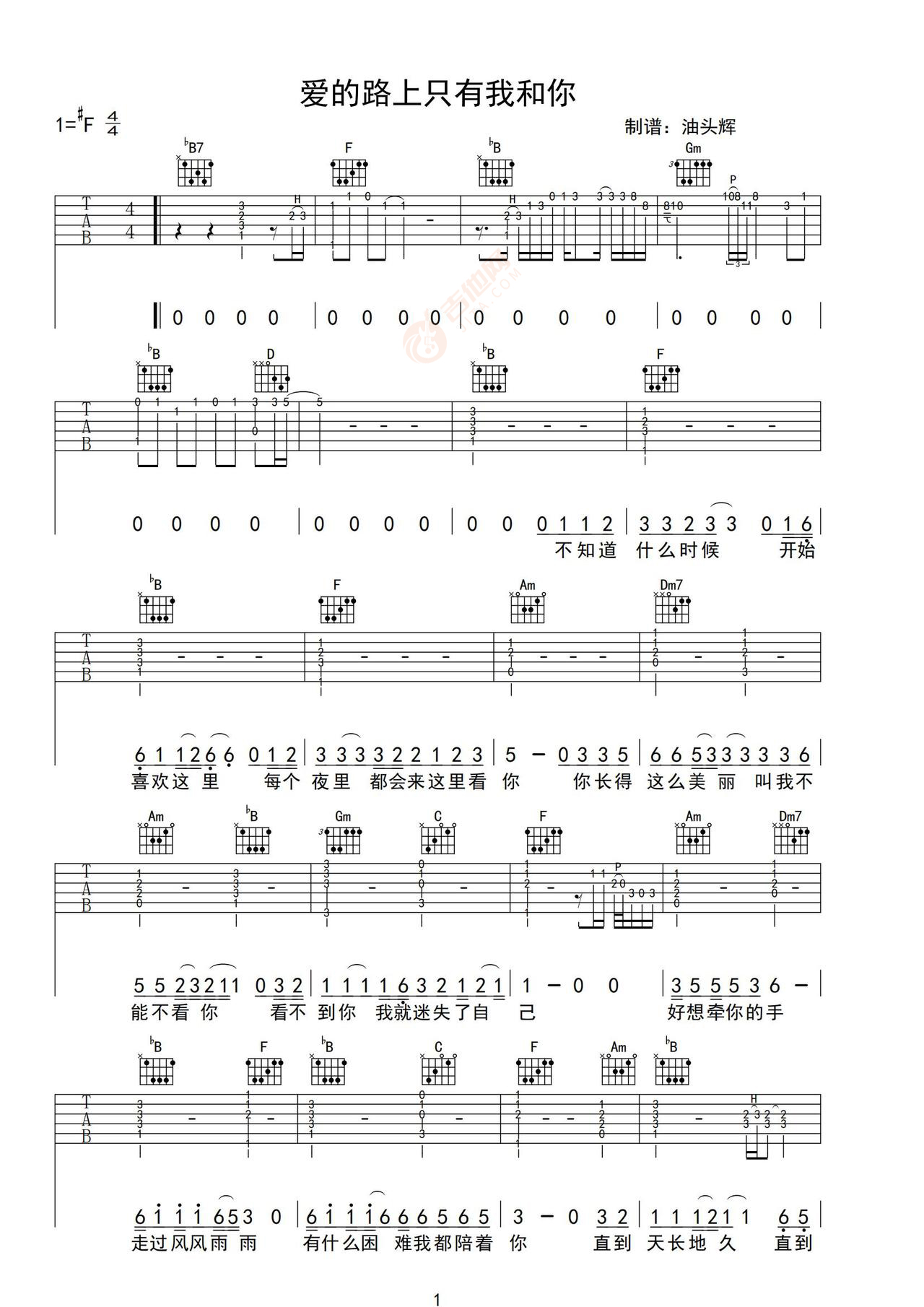 《爱的路上只有我和你》任贤齐 F调原版 吉他弹唱谱