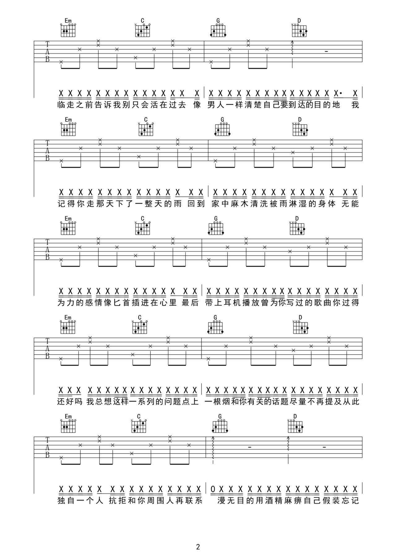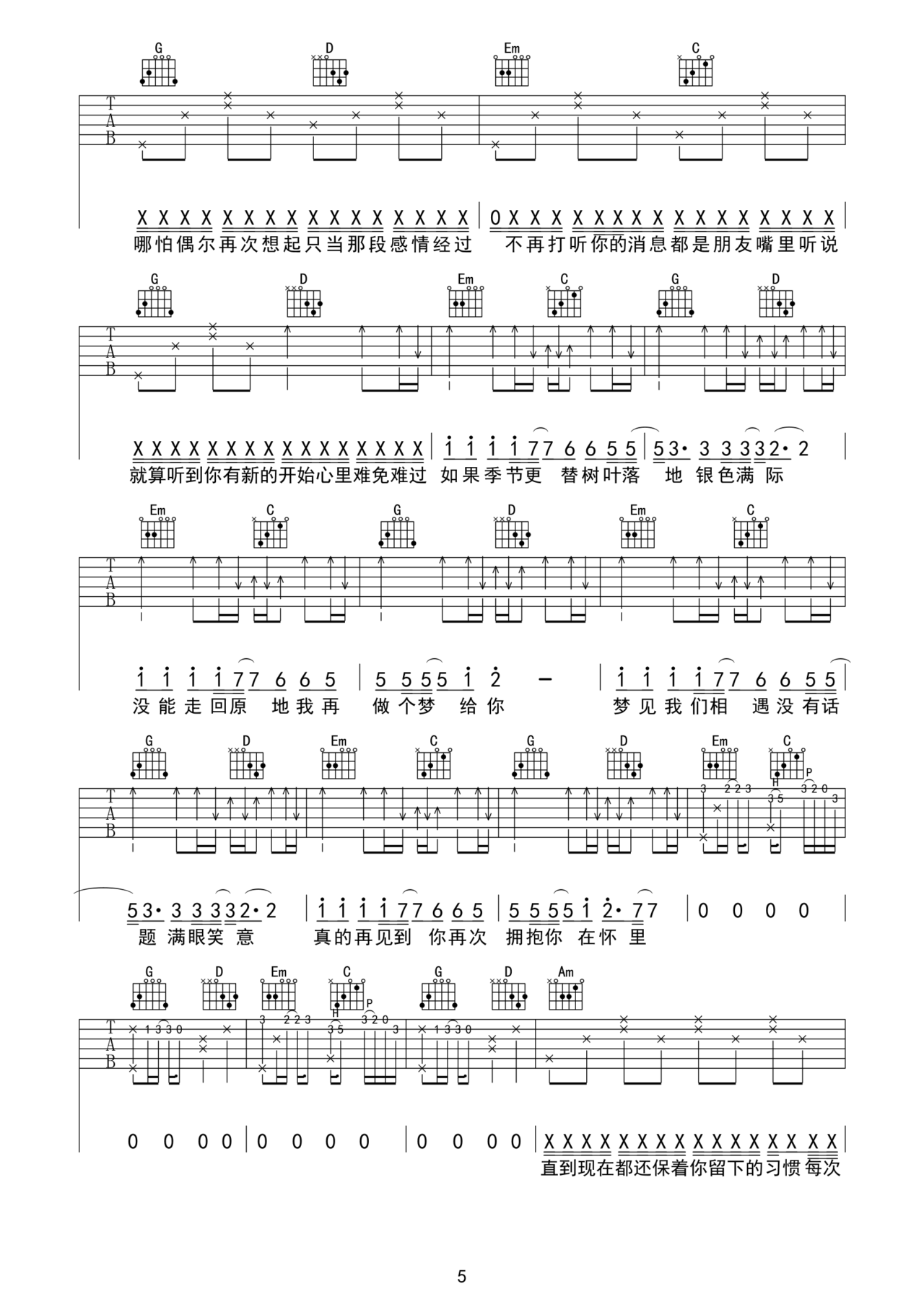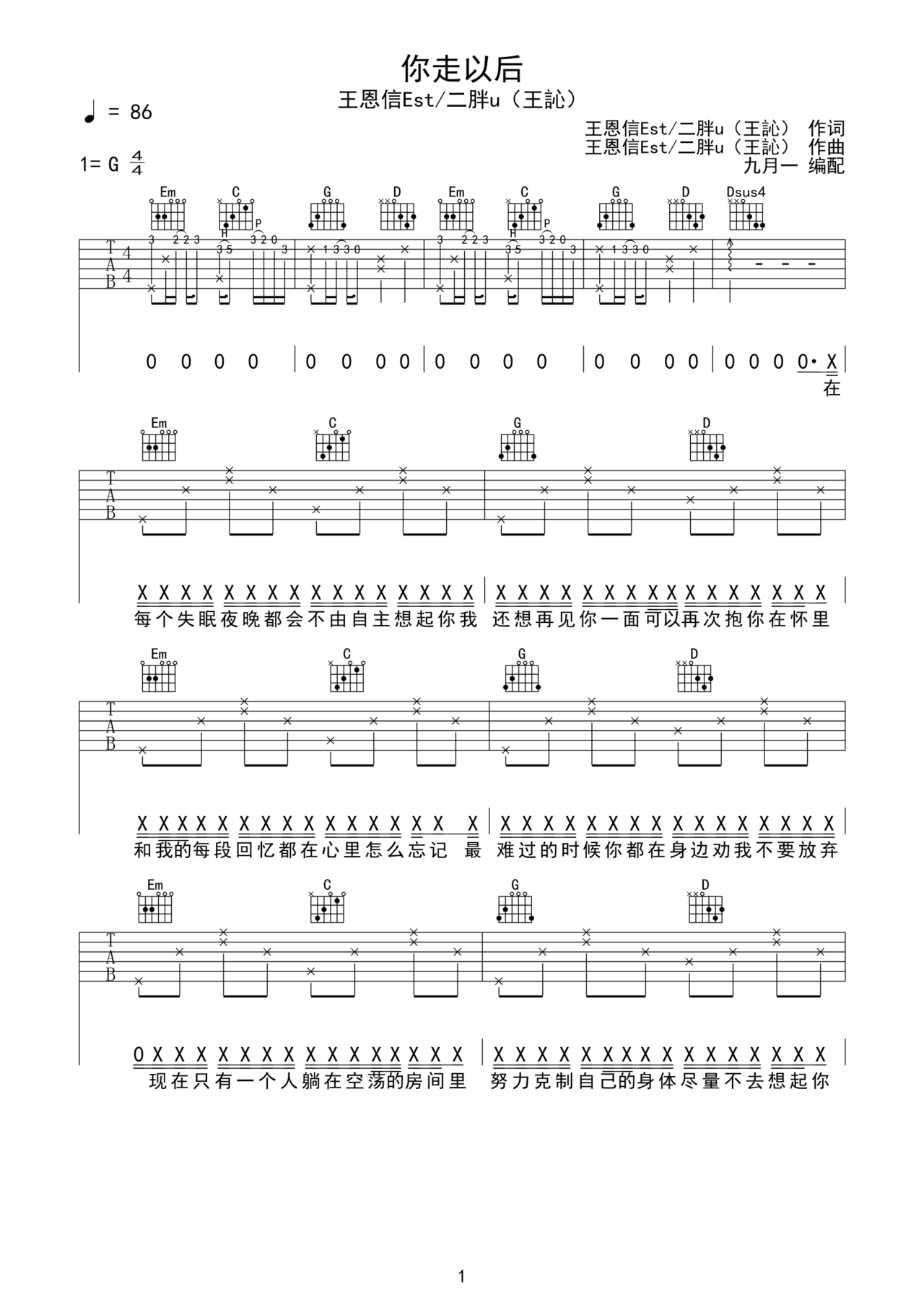 《你走以后》王恩信est/二胖 G调原版 吉他弹唱谱