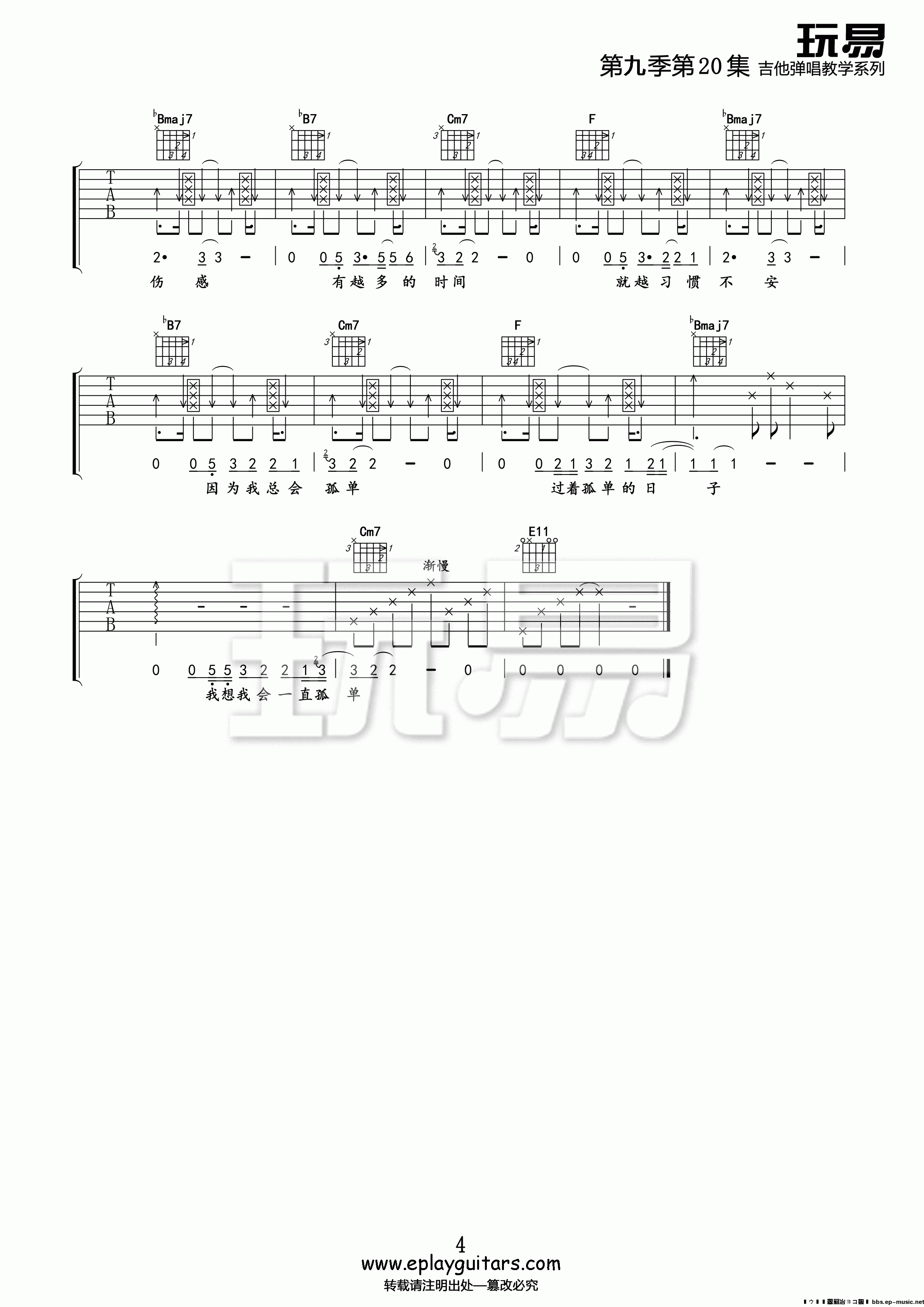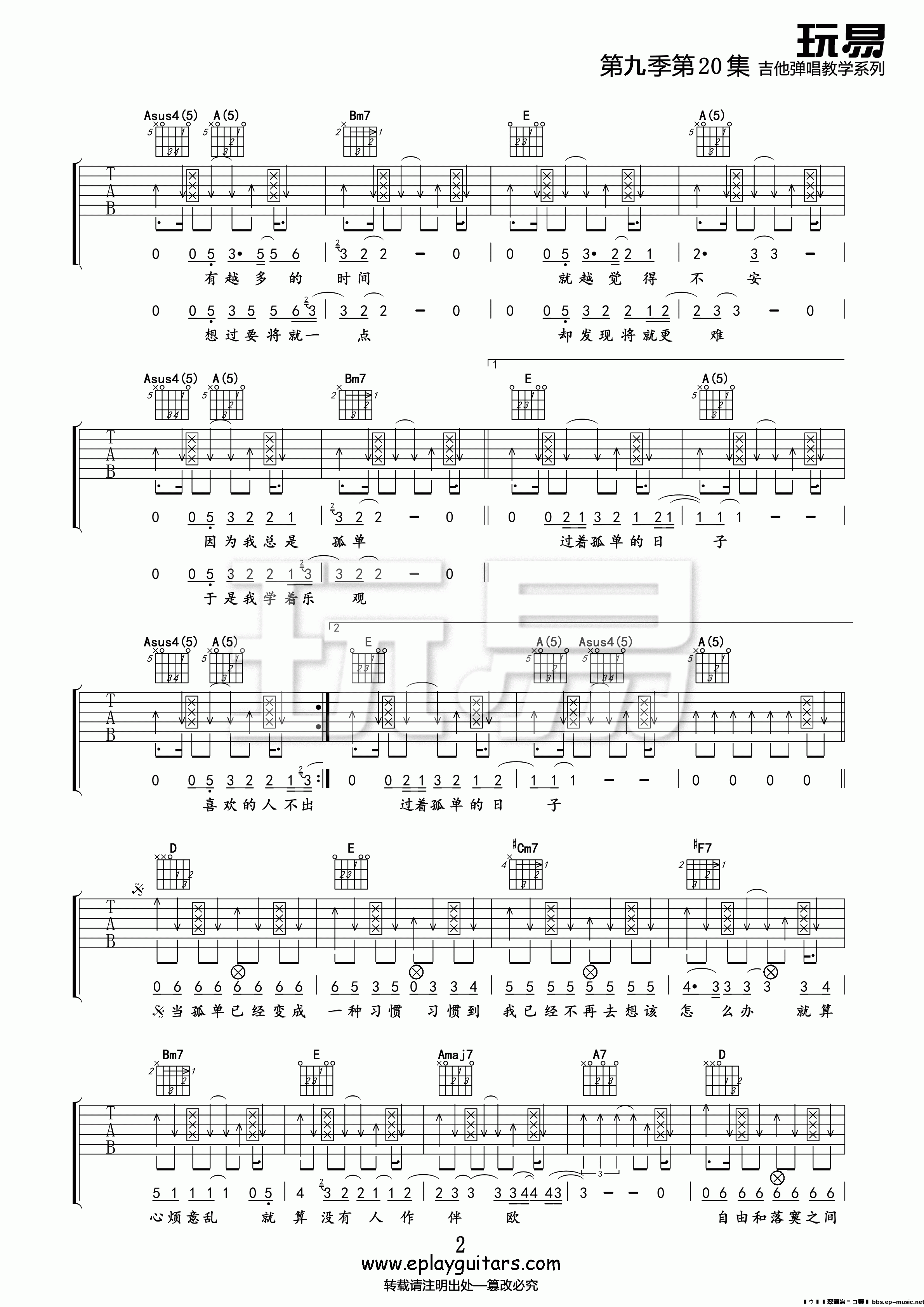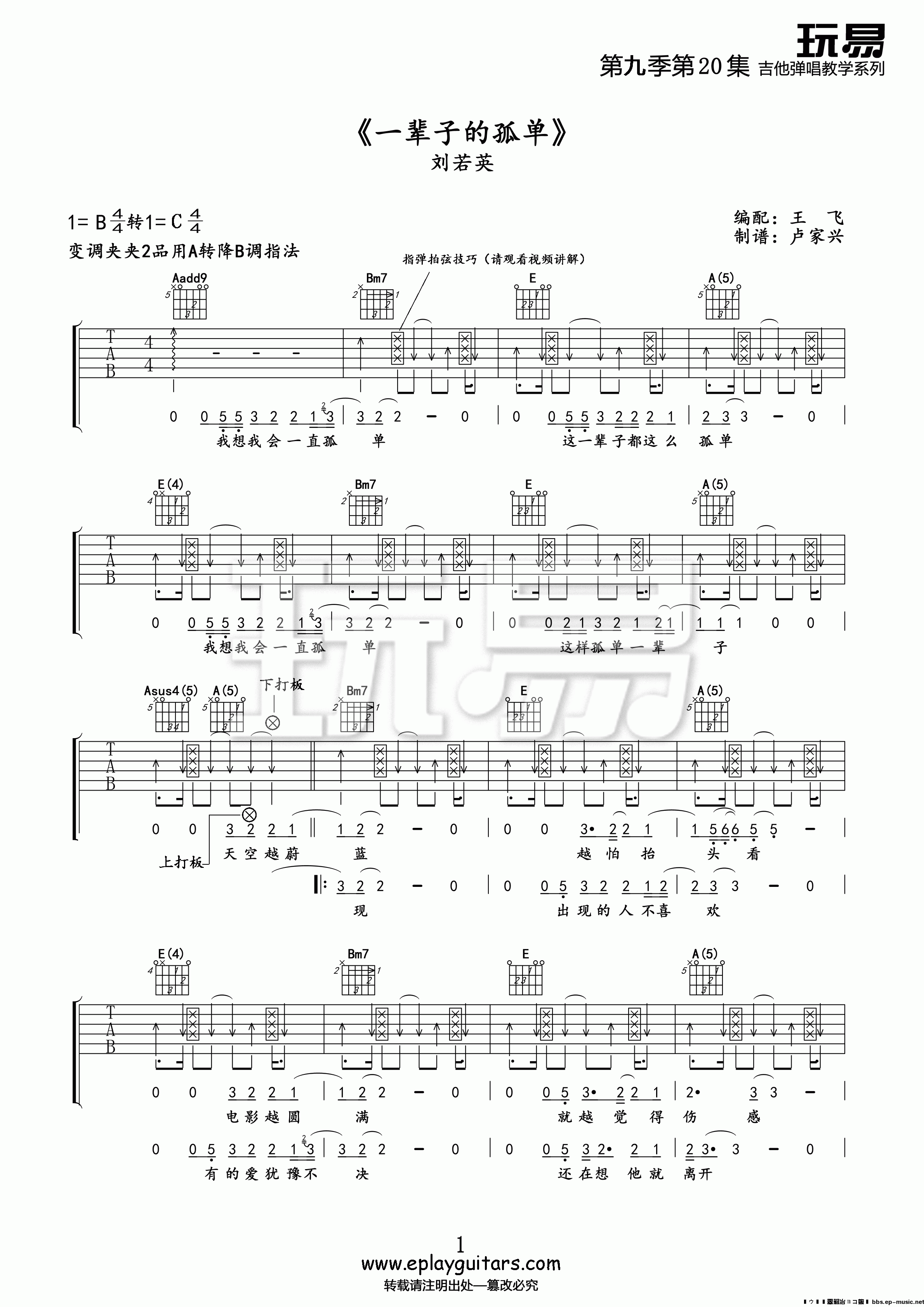 《一辈子的孤单》刘若英 吉他弹唱谱; 《一辈子的孤单》是刘若英2002年发行的代表作之一,由深白色作词作曲。这首歌以轻盈的旋律包裹着沉重的孤独命题,展现了都市人在情感困境中的矛盾与自省,成为华语乐坛探讨现代人精神世界的经典文本。