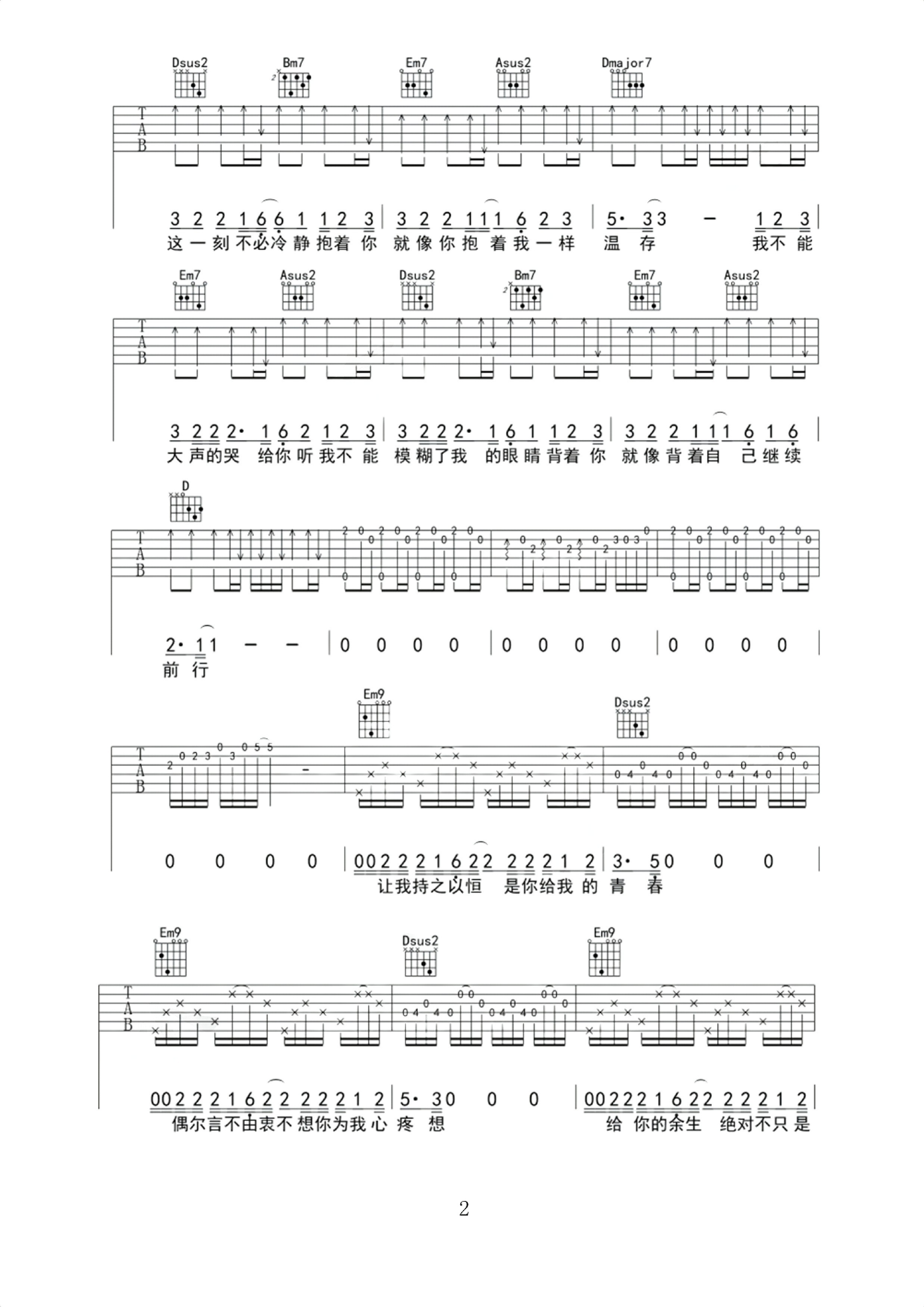 《哭给你听》金志文 原 bE 调用D调指法 吉他弹唱谱