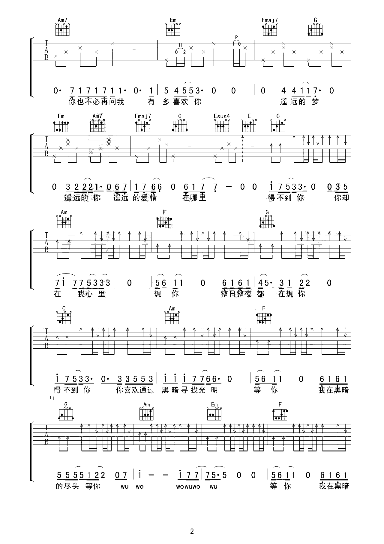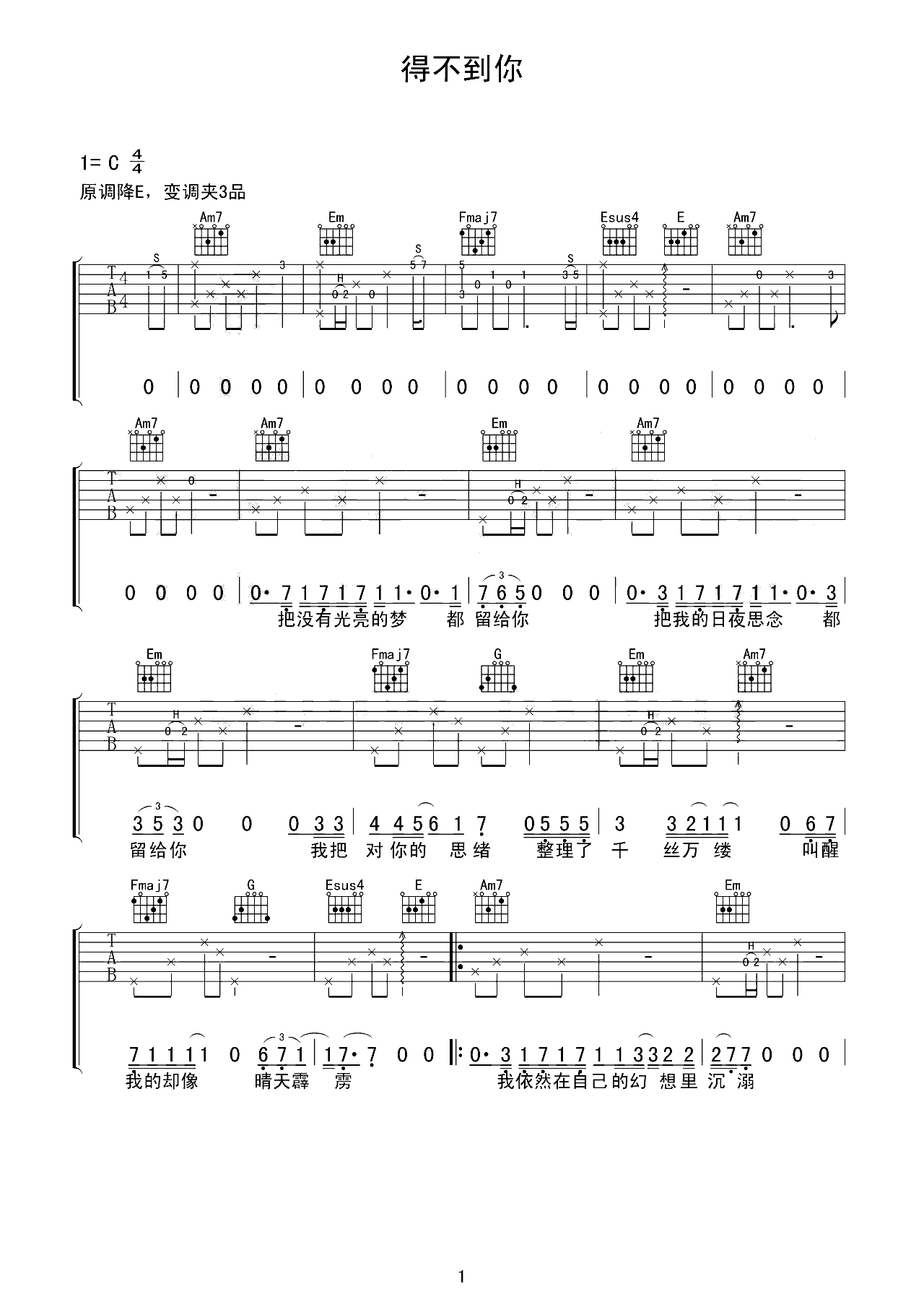 《得不到你》吉他谱-E调