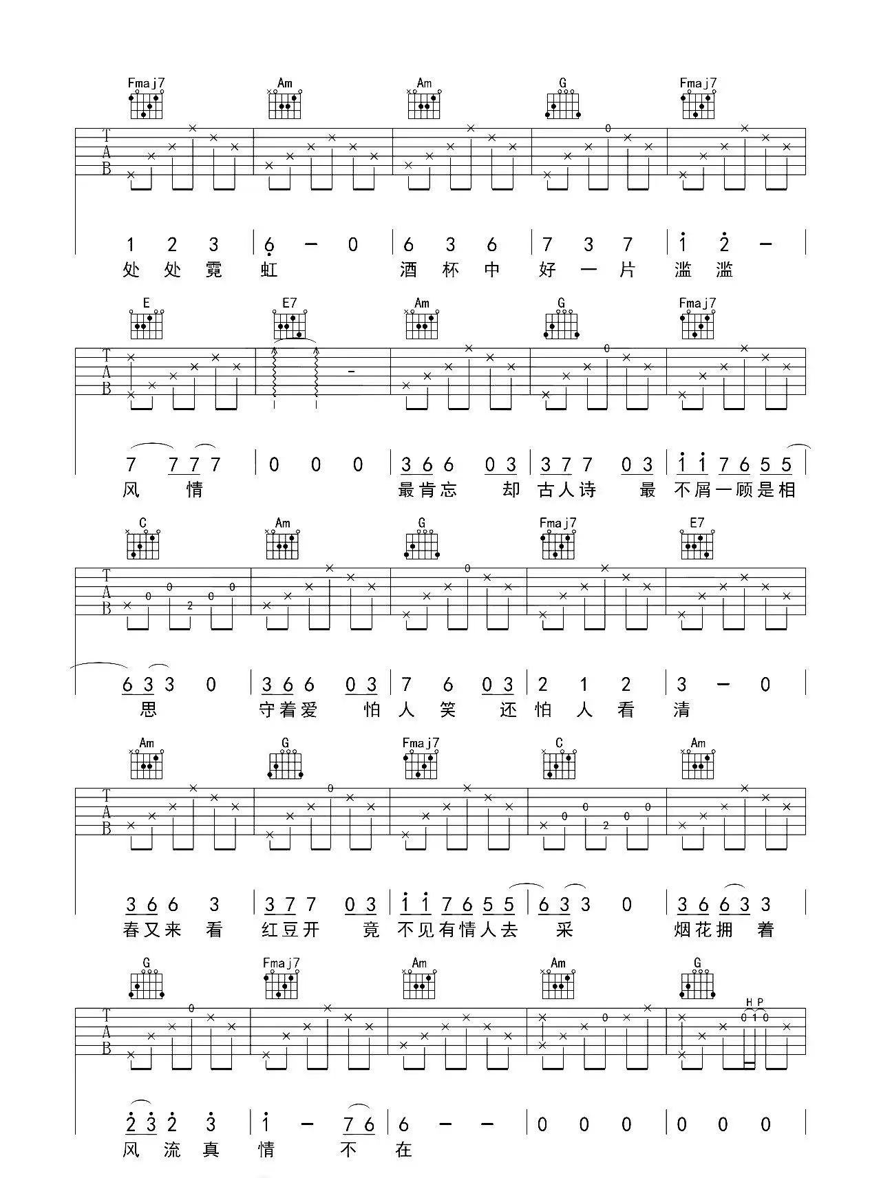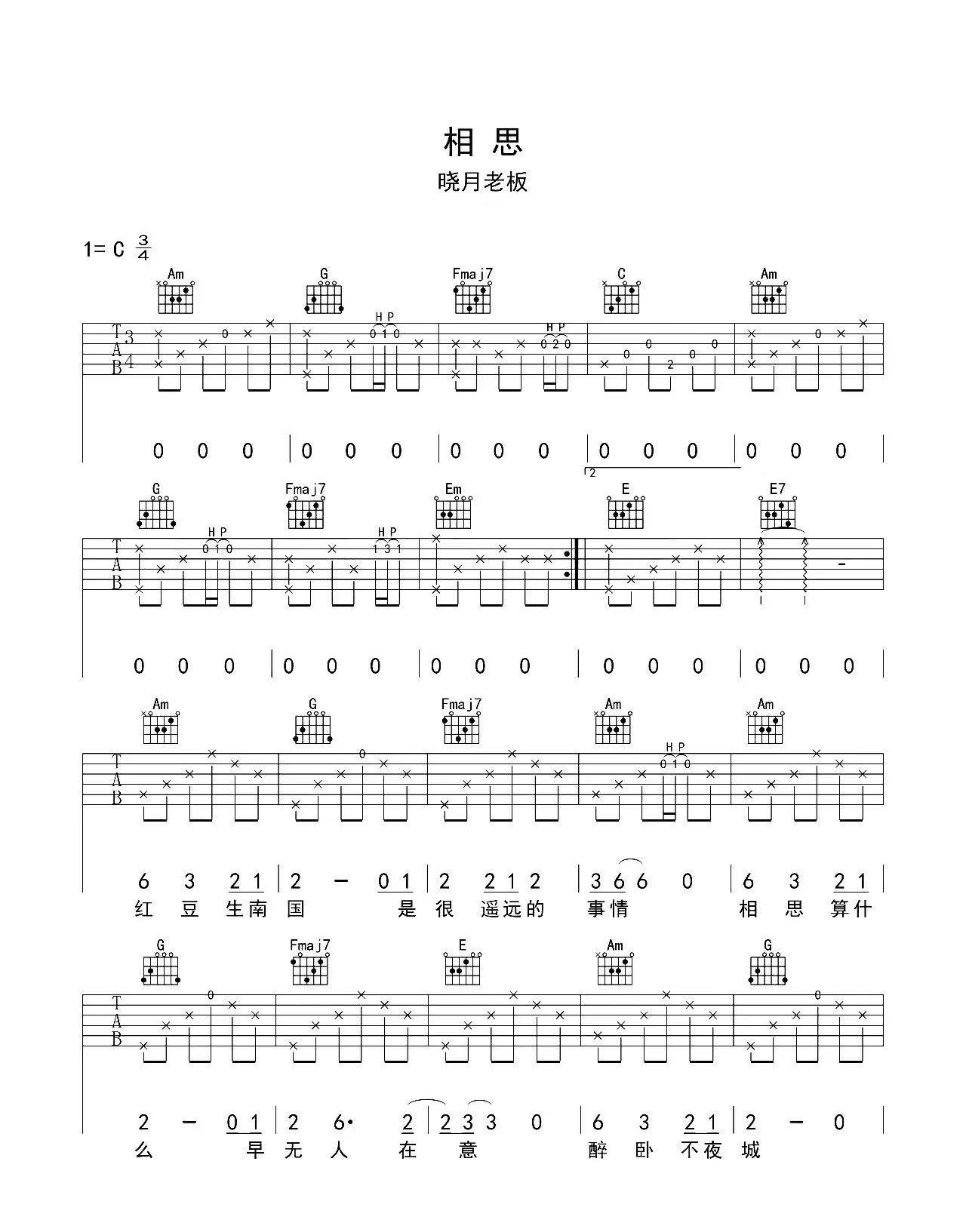 毛阿敏《相思》c调 吉他弹唱谱