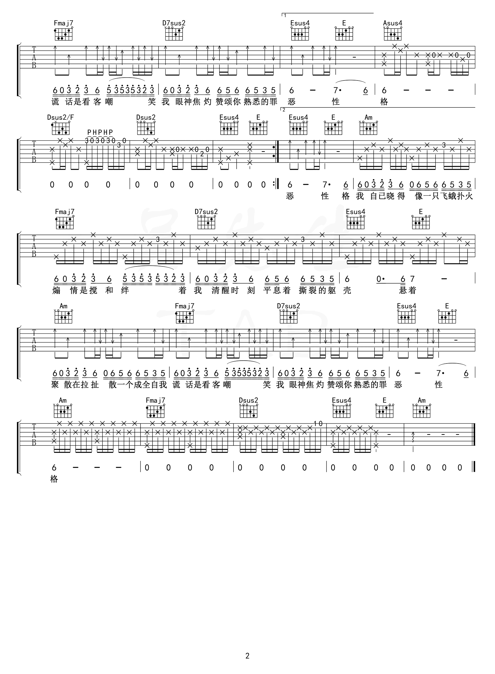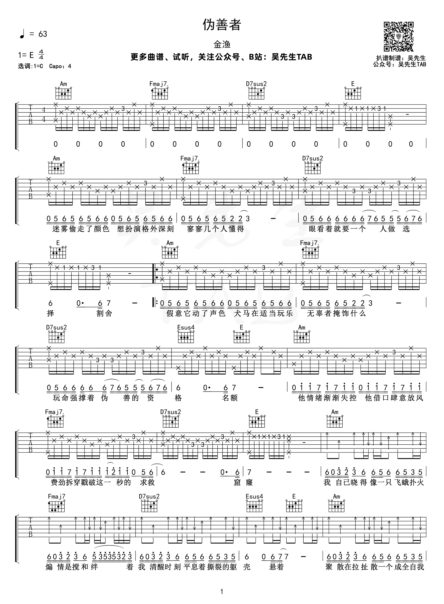 金渔《伪善者》吉他谱_C调_吉他图片谱,_高清弹唱吉他谱