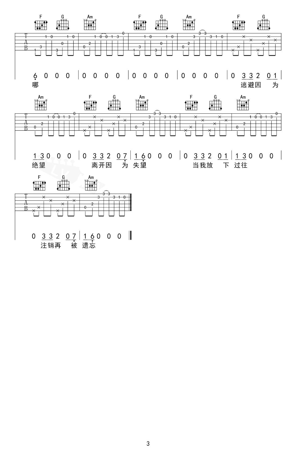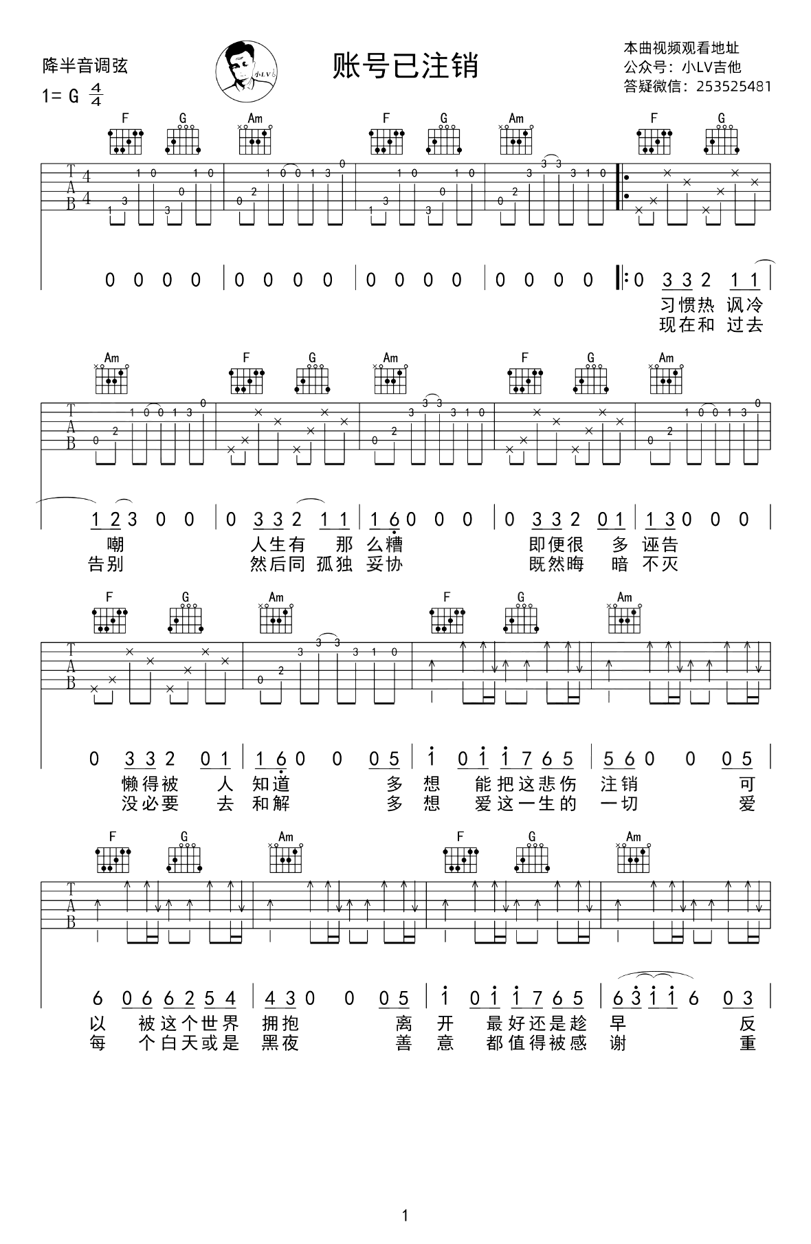 太一《账号已注销》吉他谱_G调_吉他图片谱,弹唱吉他谱