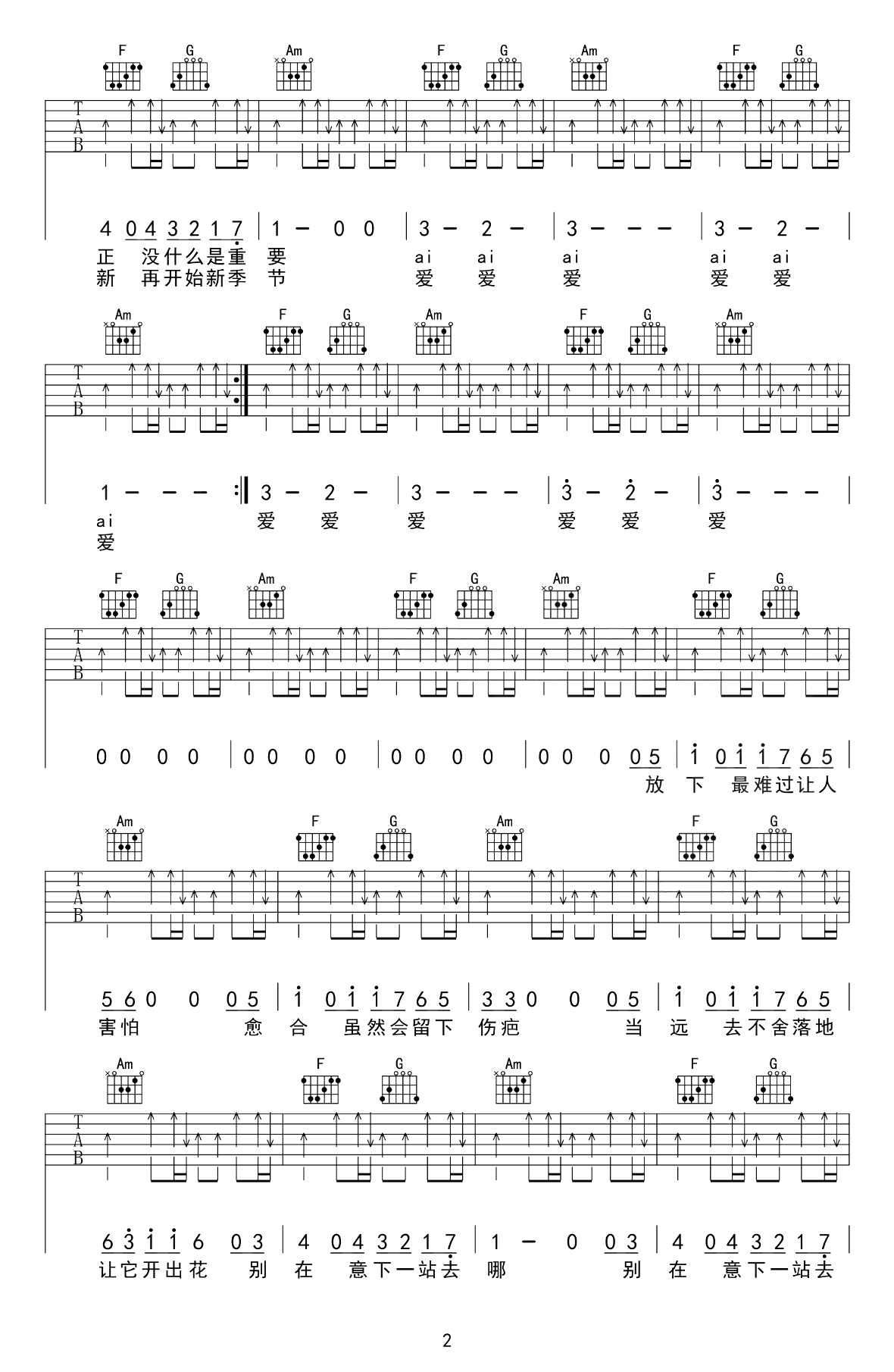 秦基博《向日葵的约定》吉他谱_F调原版弹唱谱