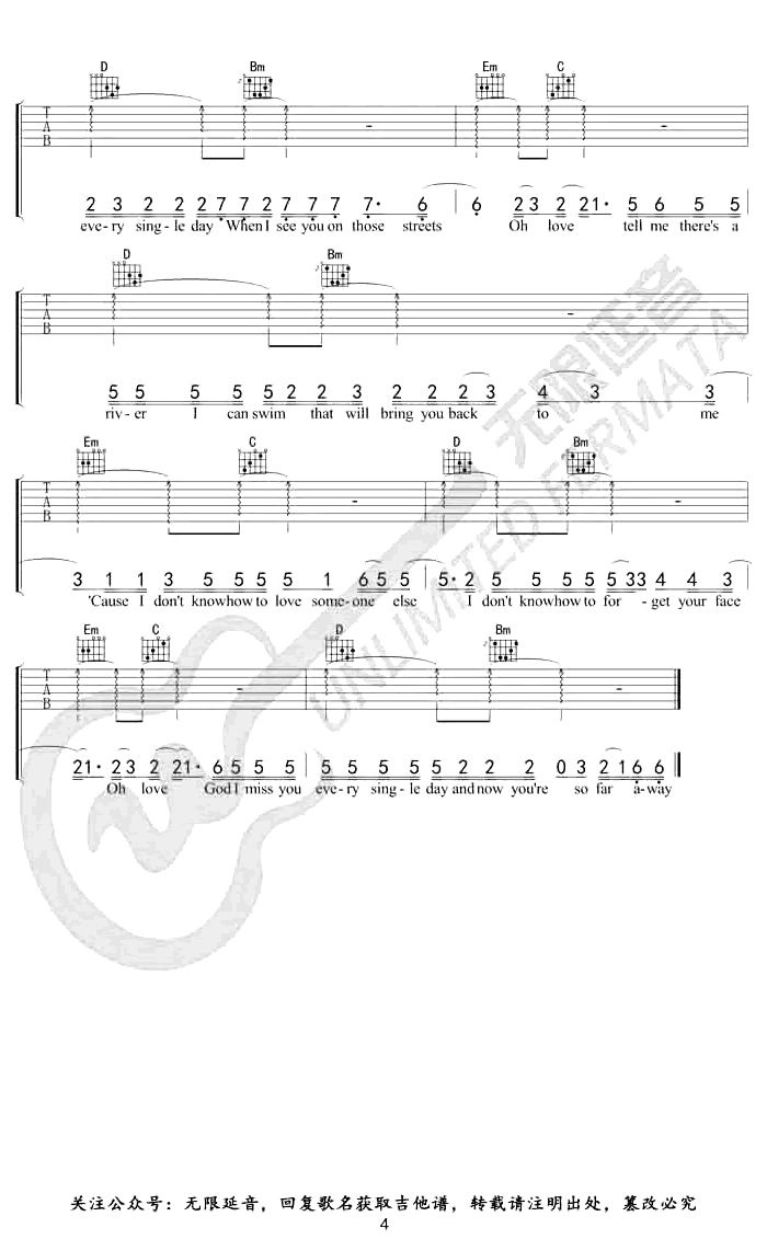 周兴哲《永不失联的爱》吉他谱_G调指法弹唱谱
