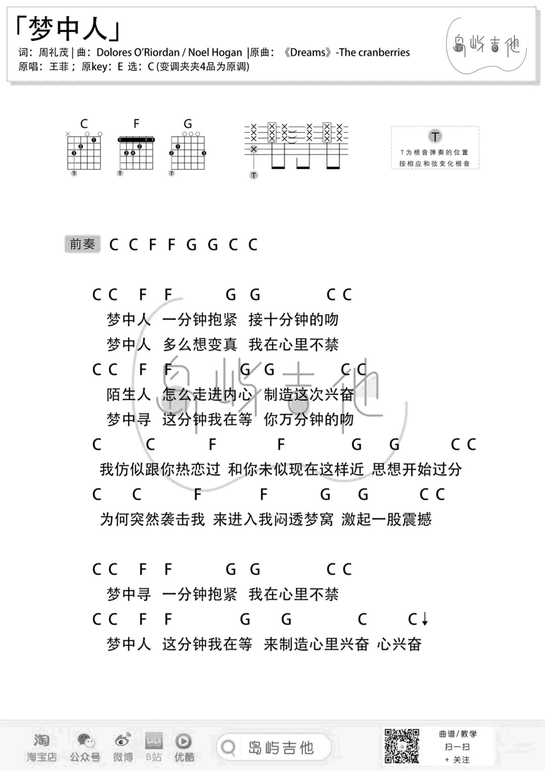 王菲《梦中人》吉他谱_C调_吉他图片谱,弹唱谱_重庆森林主题曲