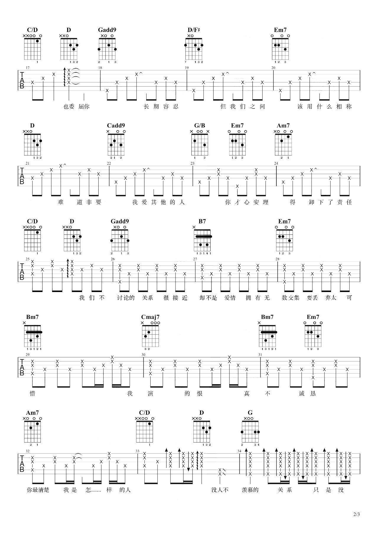 方大同《爱爱爱》吉他谱 G调原版弹唱谱