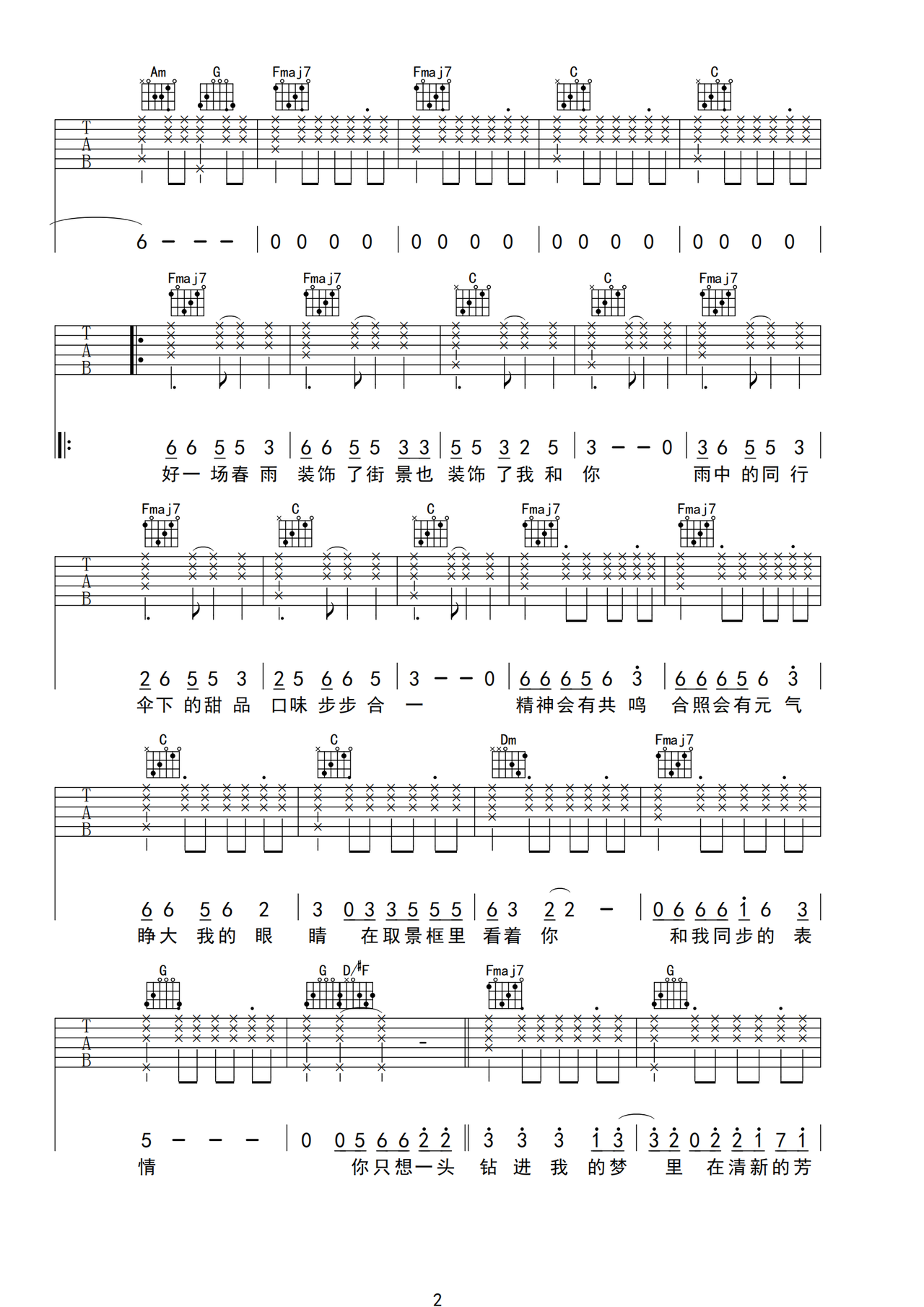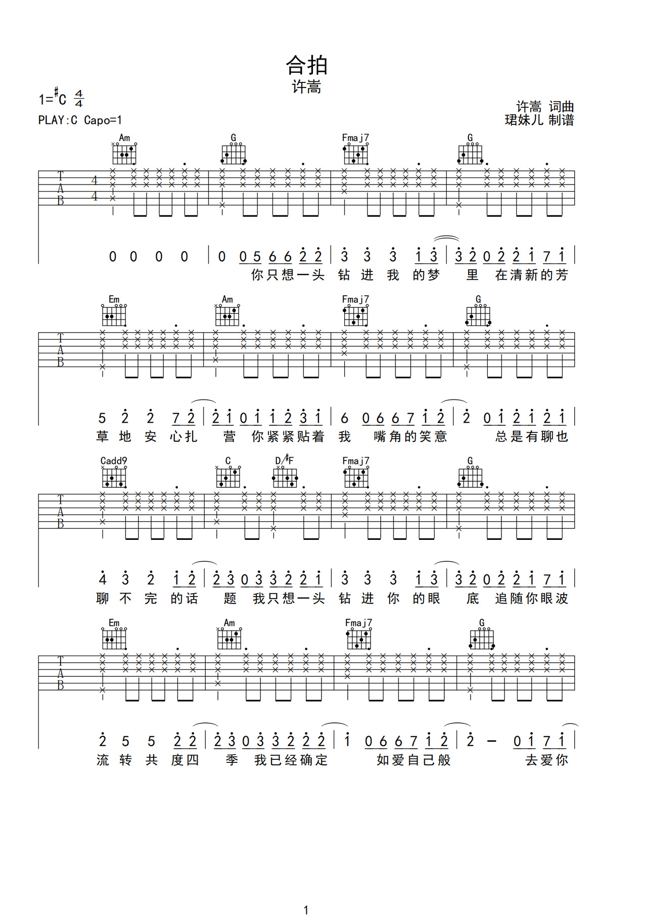 许嵩《合拍》吉他谱 C调吉他弹唱