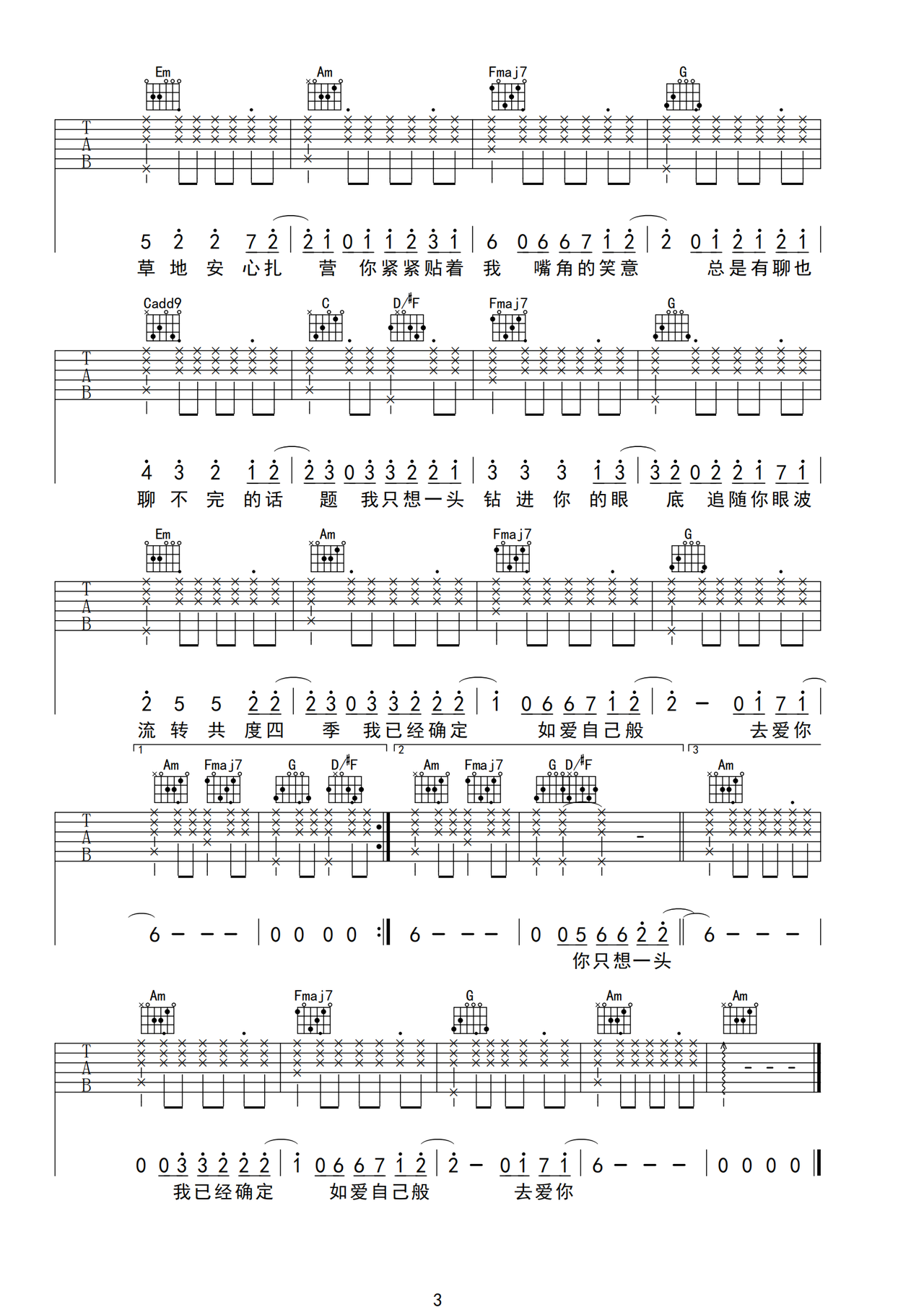 许嵩《合拍》吉他谱 《合拍许嵩》是许嵩的首张实体专辑,共收录了11首曲目。这张专辑是许嵩在多年的音乐创作之后,对自己音乐生涯的一次回顾与总结。专辑中的每一首歌曲都承载了许嵩在不同时期的情感与思考,展现了他的音乐才华与创作实力。