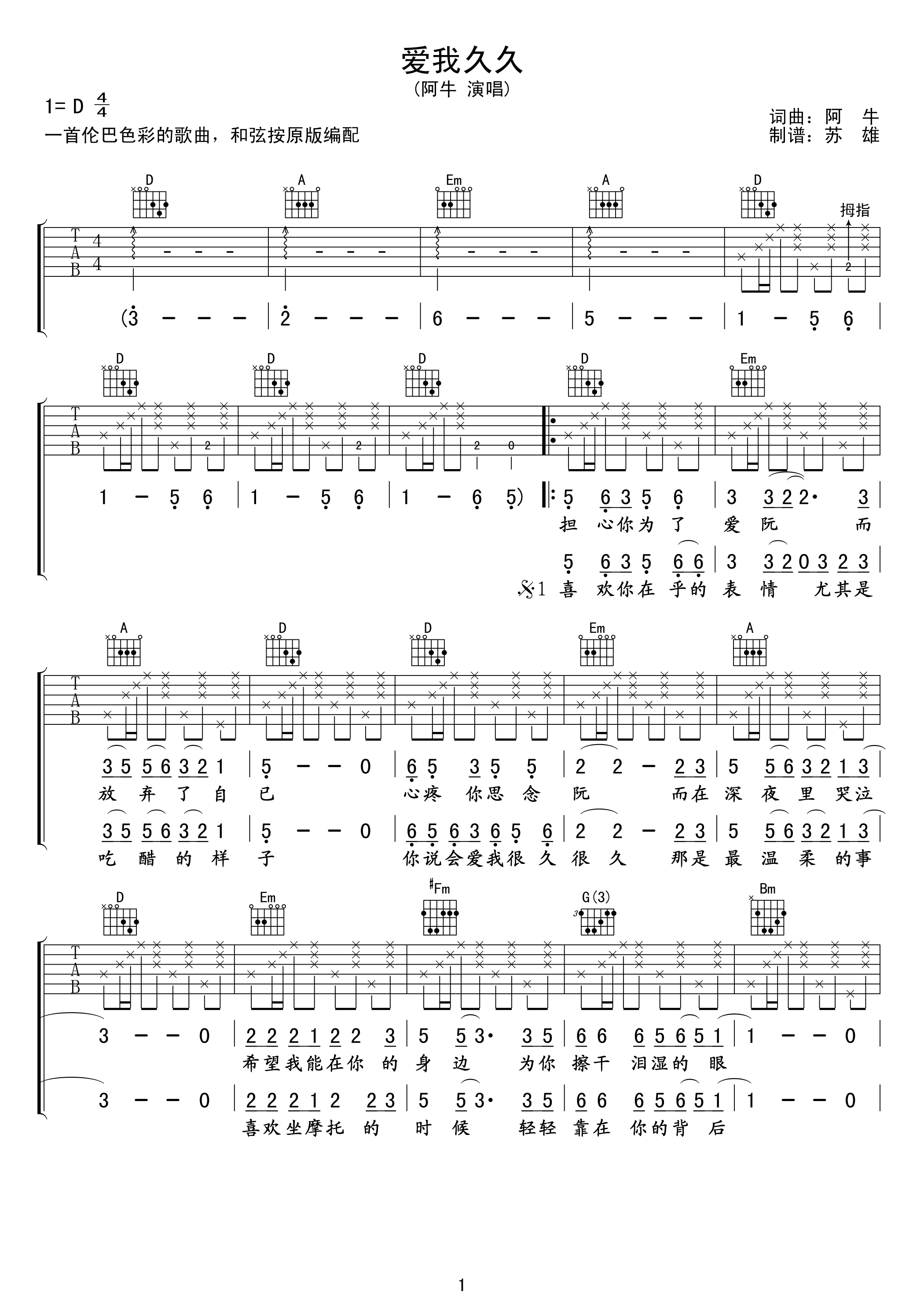 《爱我久久》阿牛 吉他弹唱谱
