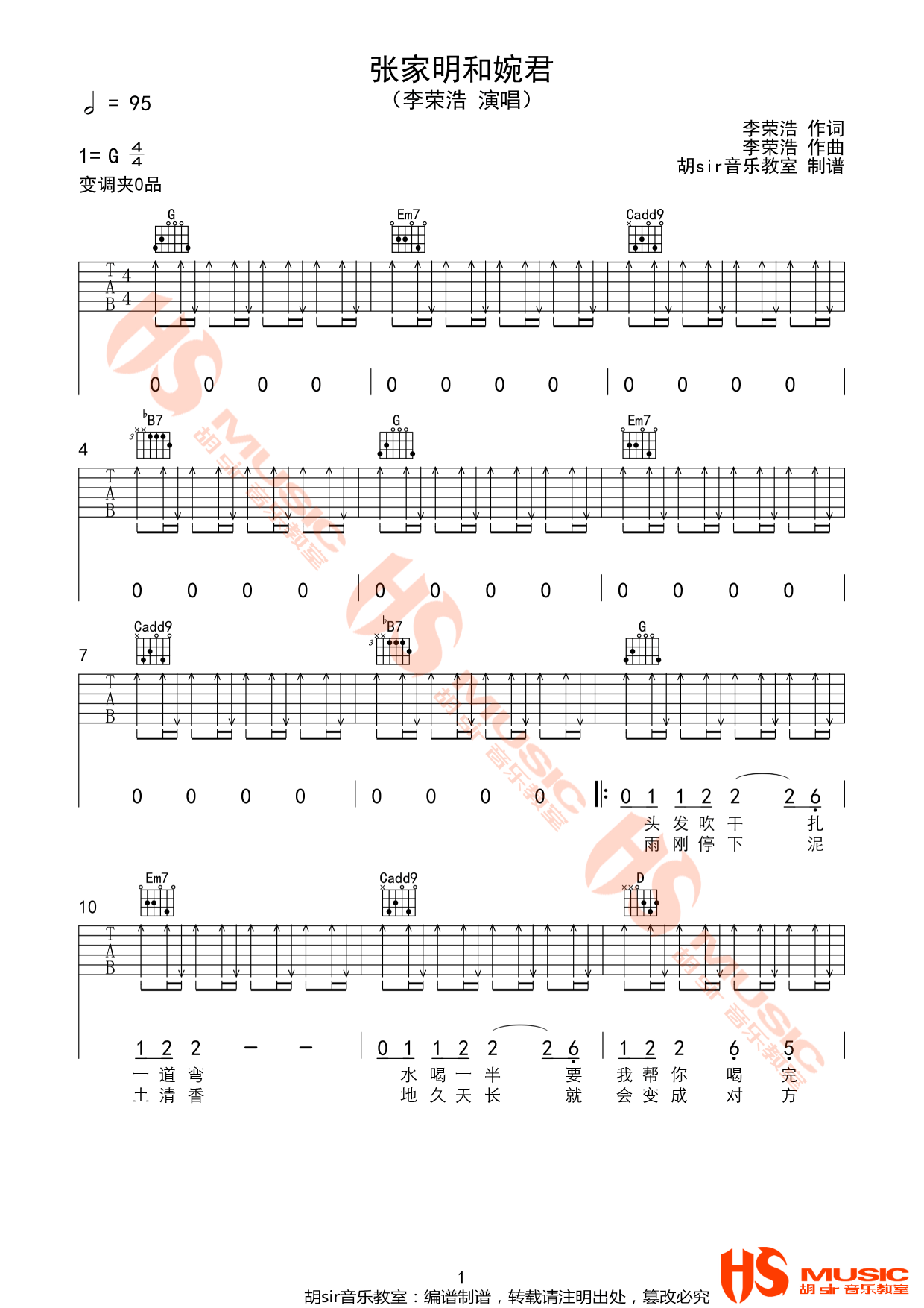 李荣浩《张家明和婉君》吉他谱来啦,采用 G 调指法编配 。这首歌轻快又浪漫,灵感源于港片,带听众走进两小无猜的青涩爱情。谱子含三张高清图片,由胡 sir 音乐教室精心制作。主歌副歌不同调,和弦丰富,节奏型独特,弹唱时要多练习。快拿起吉他,弹奏这份甜蜜,感受别样的音乐魅力。