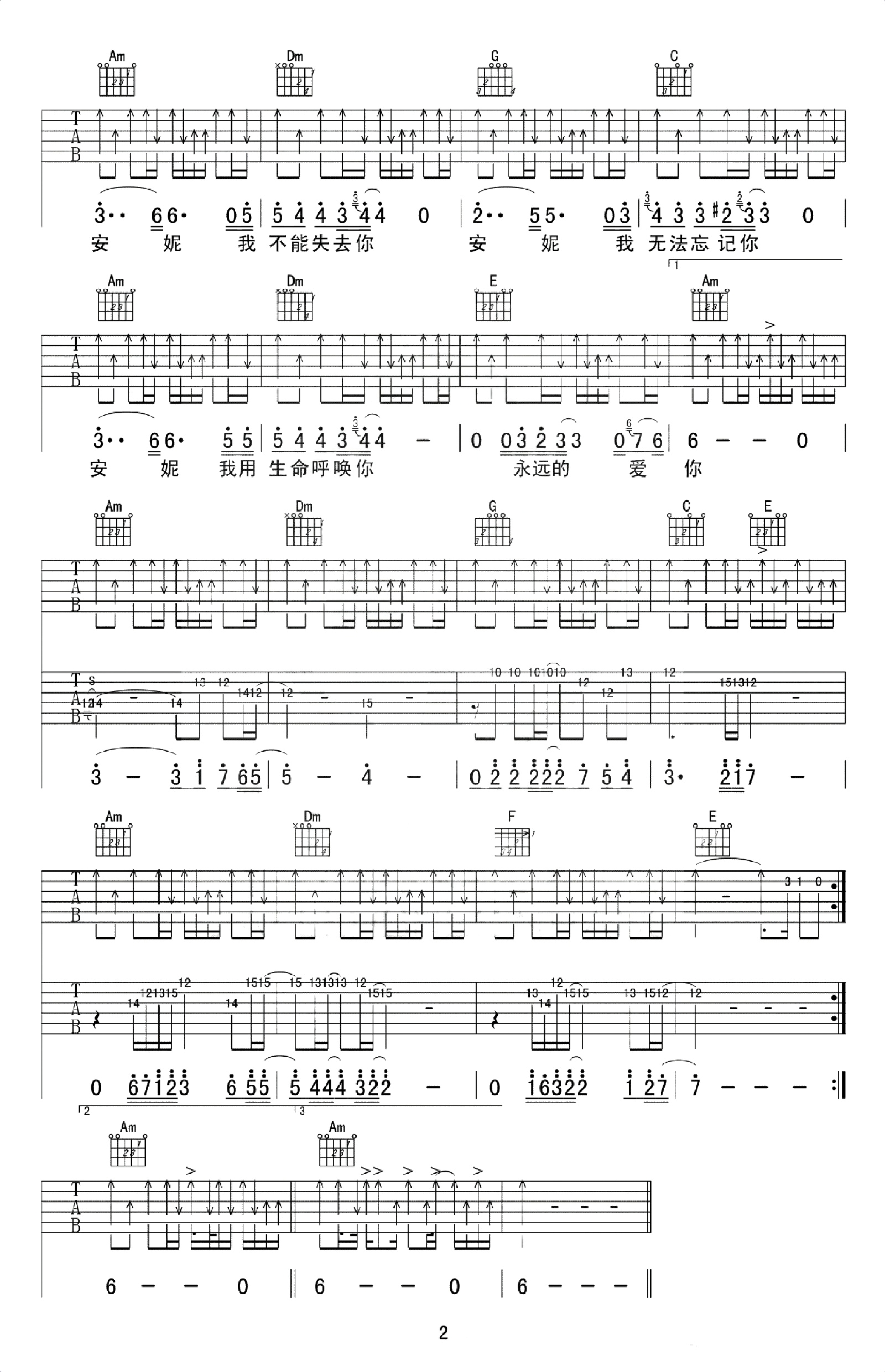 王杰这首承载初恋伤痛的金曲,C 调弹唱谱满是深情质感。70Bpm 舒缓节奏,Am、Dm、G 等基础和弦编排,主歌分解指法细腻铺陈,副歌轻扫弦迸发呐喊。无需变调夹即贴原调,指尖起落间,“安妮,我不能失去你” 的执念与怅惘尽显,是藏着岁月重量的怀旧弹唱经典。