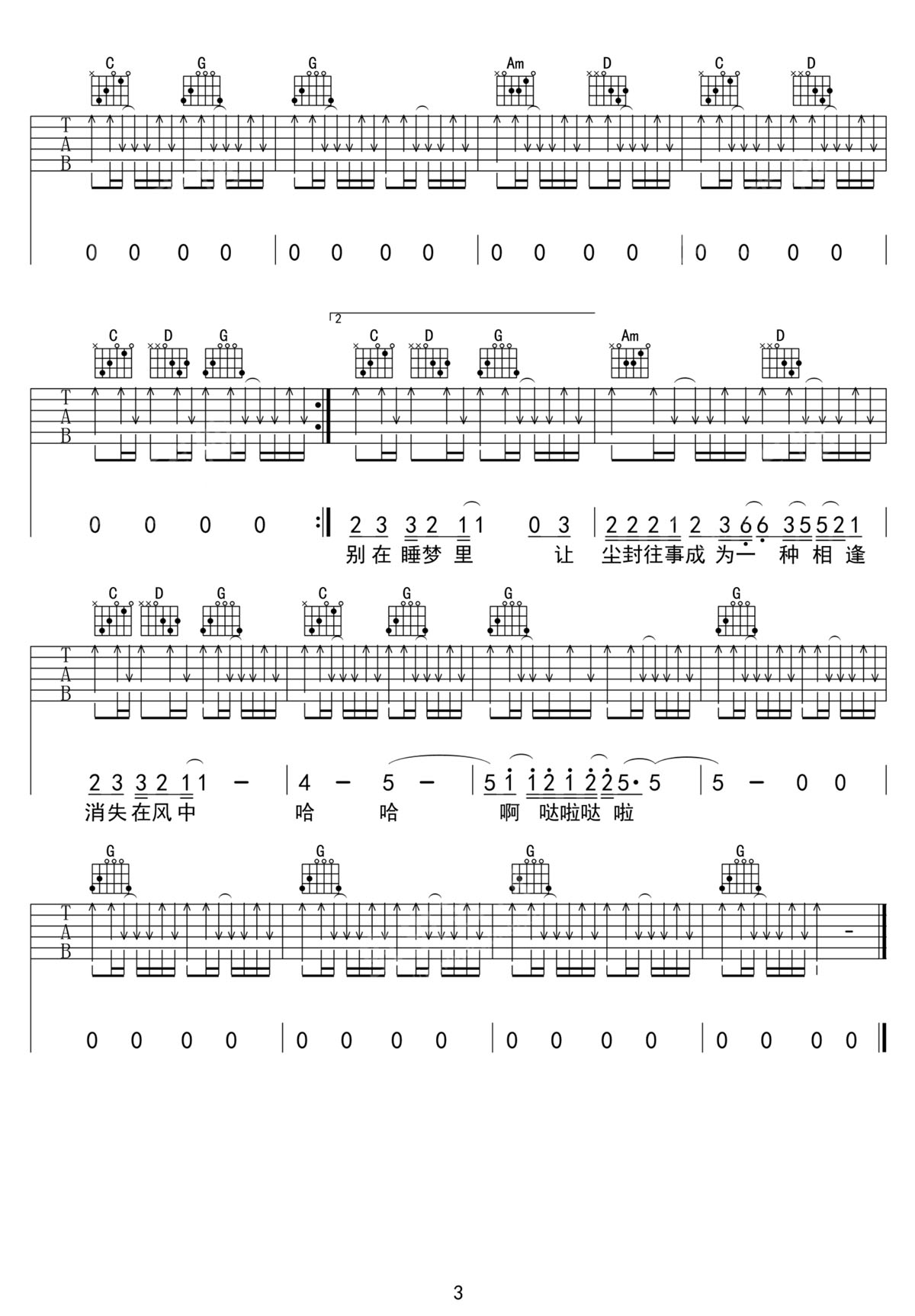 伍佰《随风而去》吉他谱_G调扫弦版弹唱谱-图3