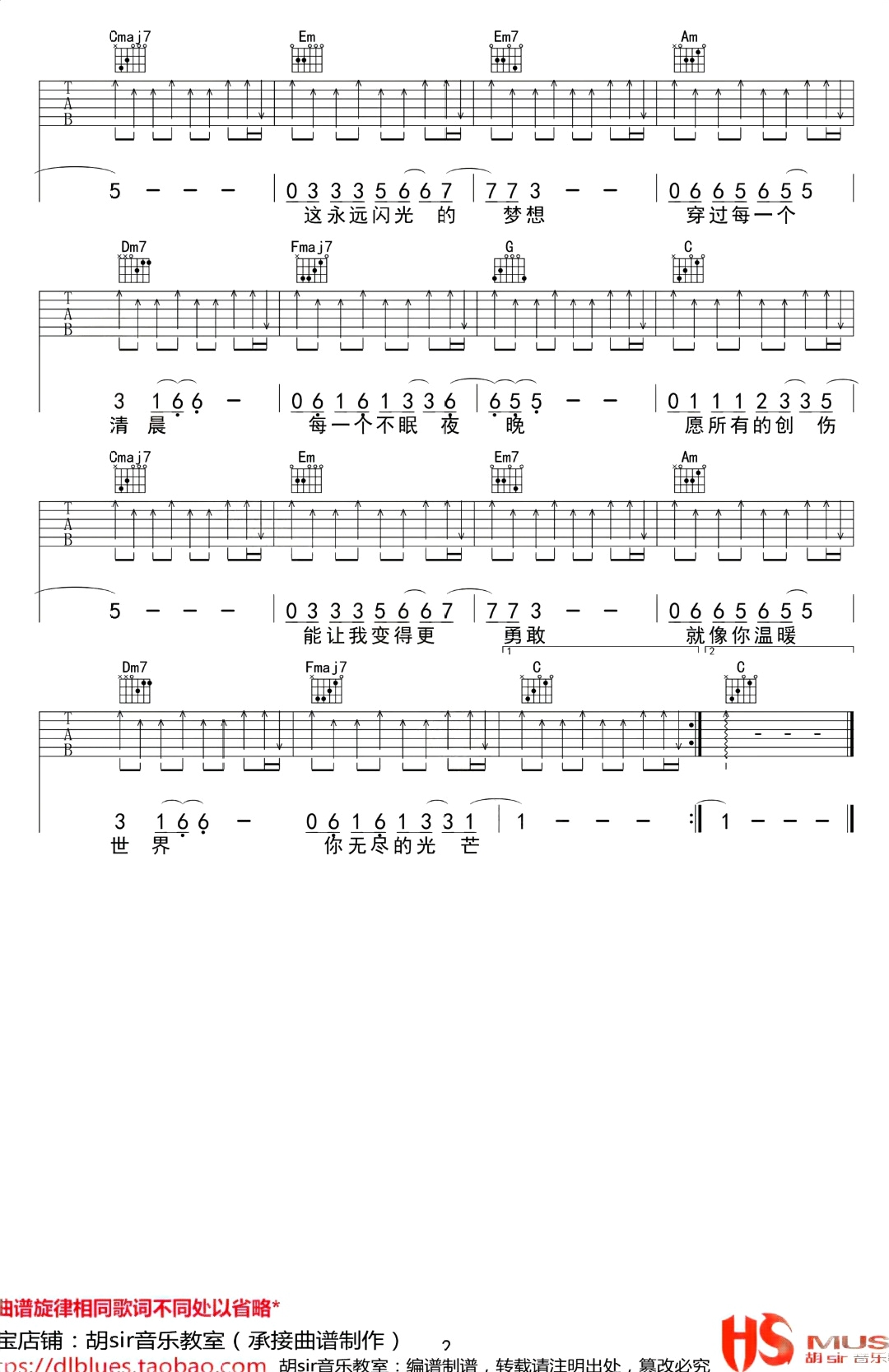 《无尽光芒》许巍 降F调 吉他弹唱谱