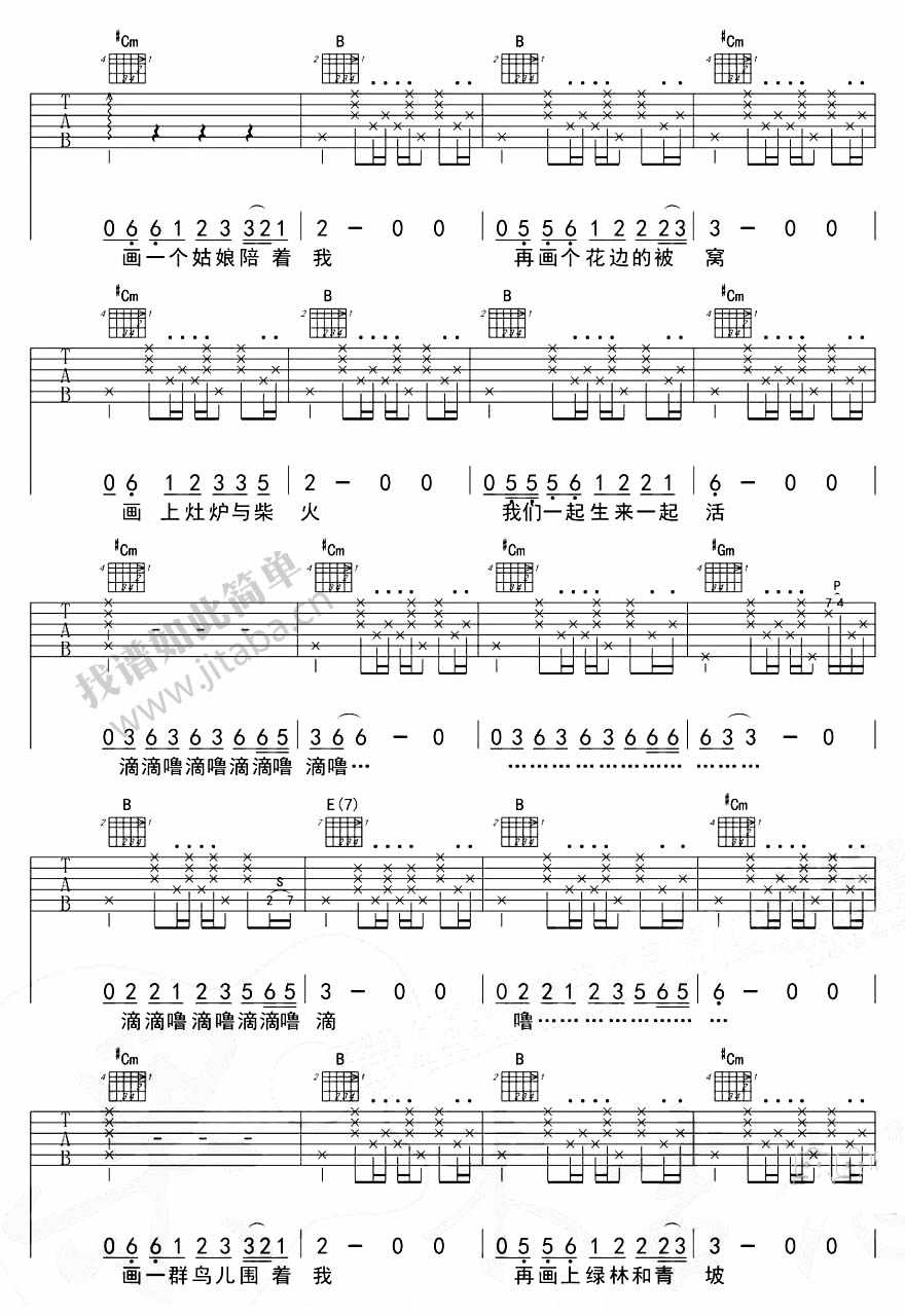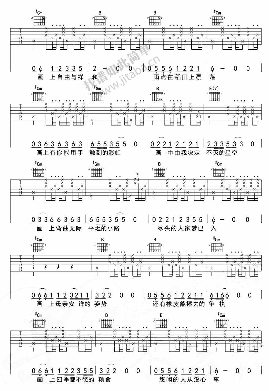 赵雷 《画》吉他谱 E调