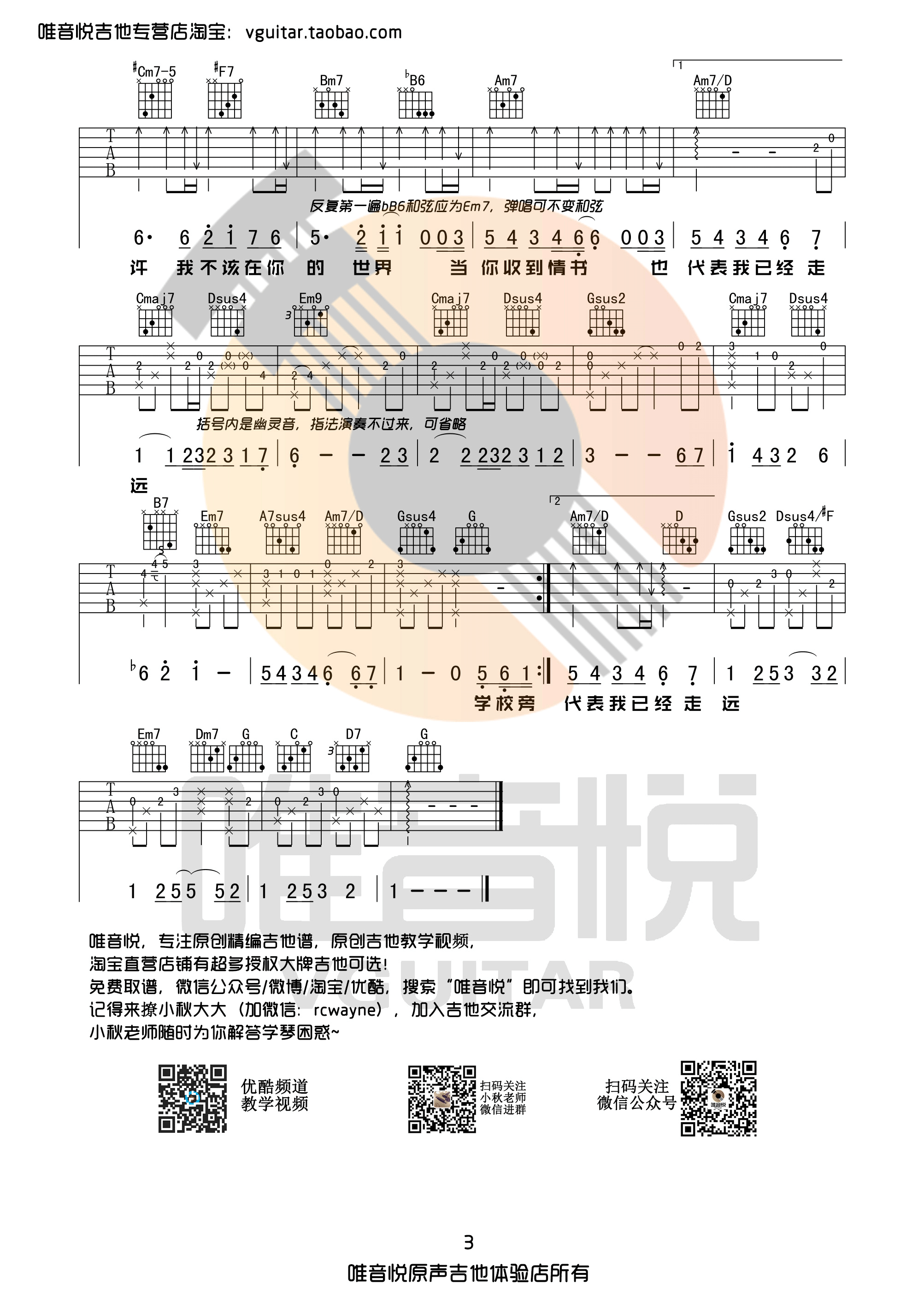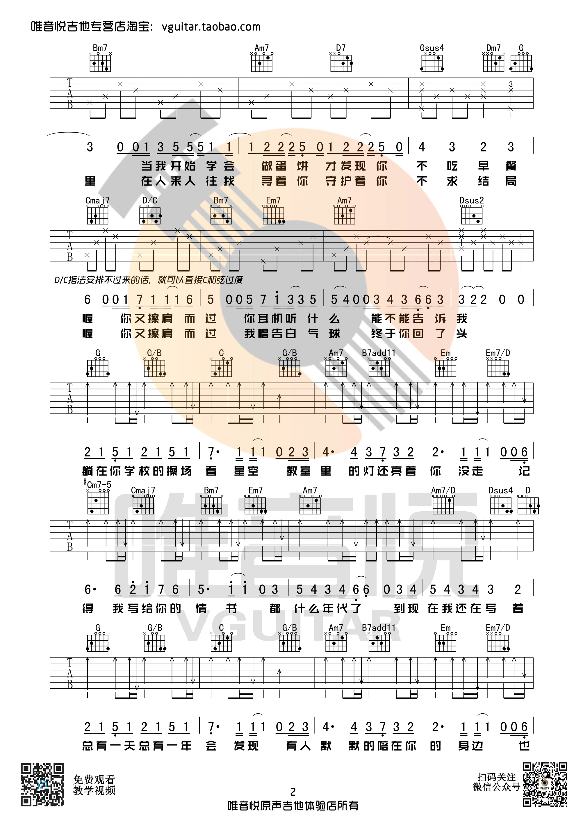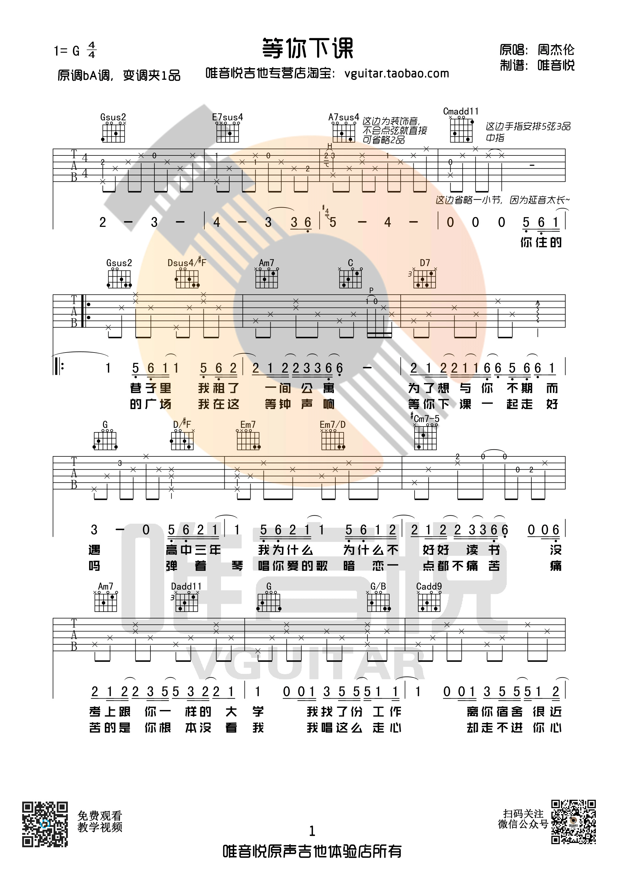 《等你下课》周杰伦  G调 吉他弹唱谱